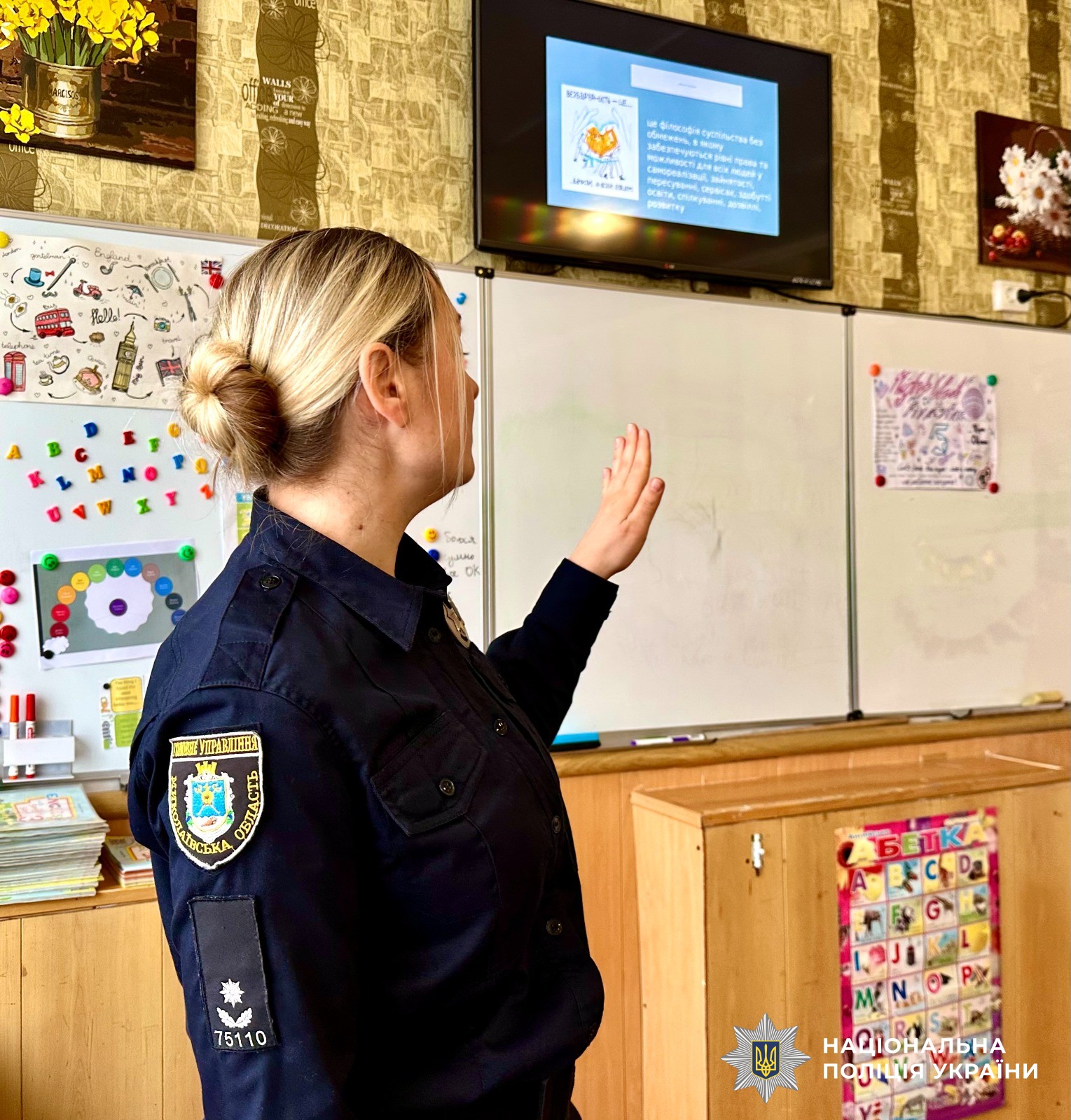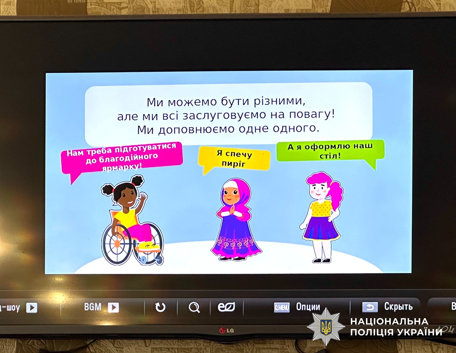 В рамках проєкту «Без барʼєрів», створеного за ініціативи першої леді України Олени Зеленської, поліцейська за допомогою навчального відео пояснила дітям важливість створення безбарʼєрного простору для всіх, який охоплює шість напрямків: фізичний, суспільний, економічний, освітній, цифровий та інформаційний.