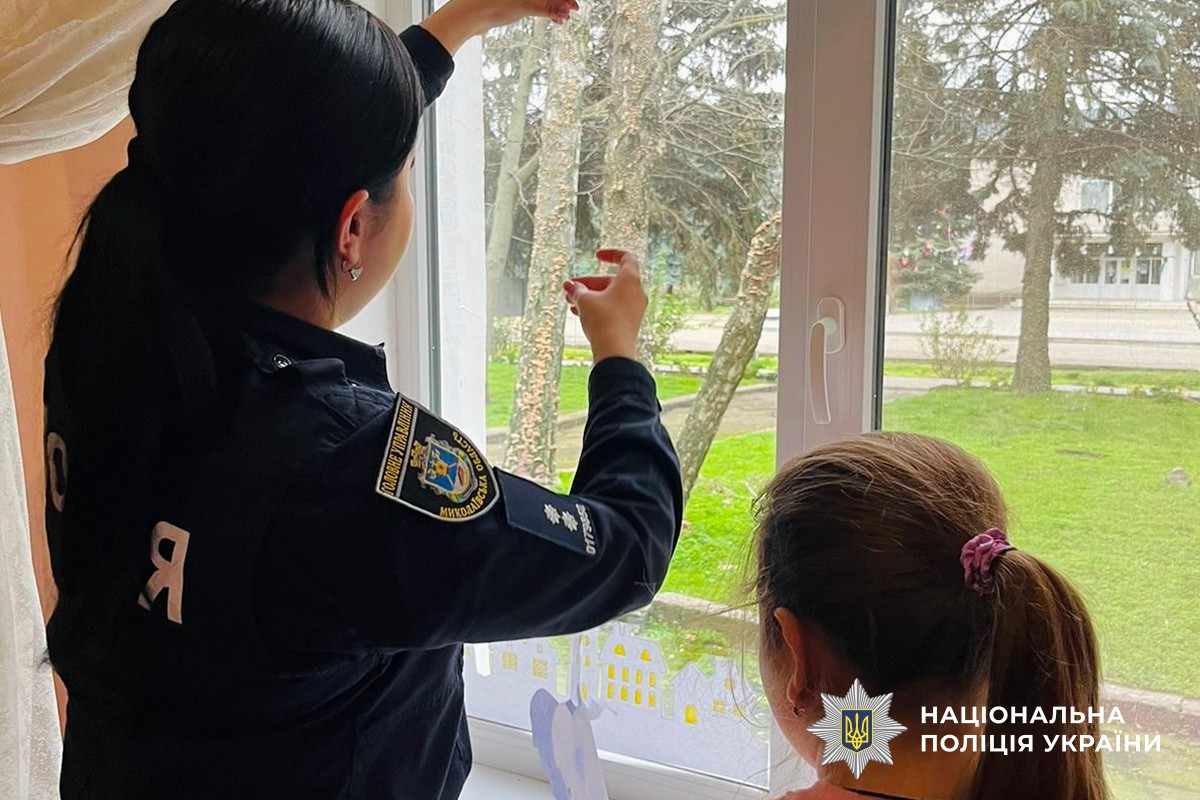 Різдвяні вікна України: на Вознесенщині поліцейська долучила дітей до святкової акції