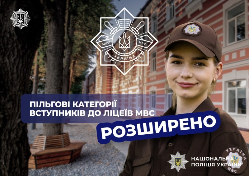 Відтепер навчатися в ліцеях МВС зможуть також діти, чиї піклувальники, один із прийомних батьків, батьків-вихователів, рідні брати або сестри загинули, зникли безвісти за особливих обставин, потрапили в полон або отримали інвалідність внаслідок травми чи хвороби під час виконання службових обов’язків.
