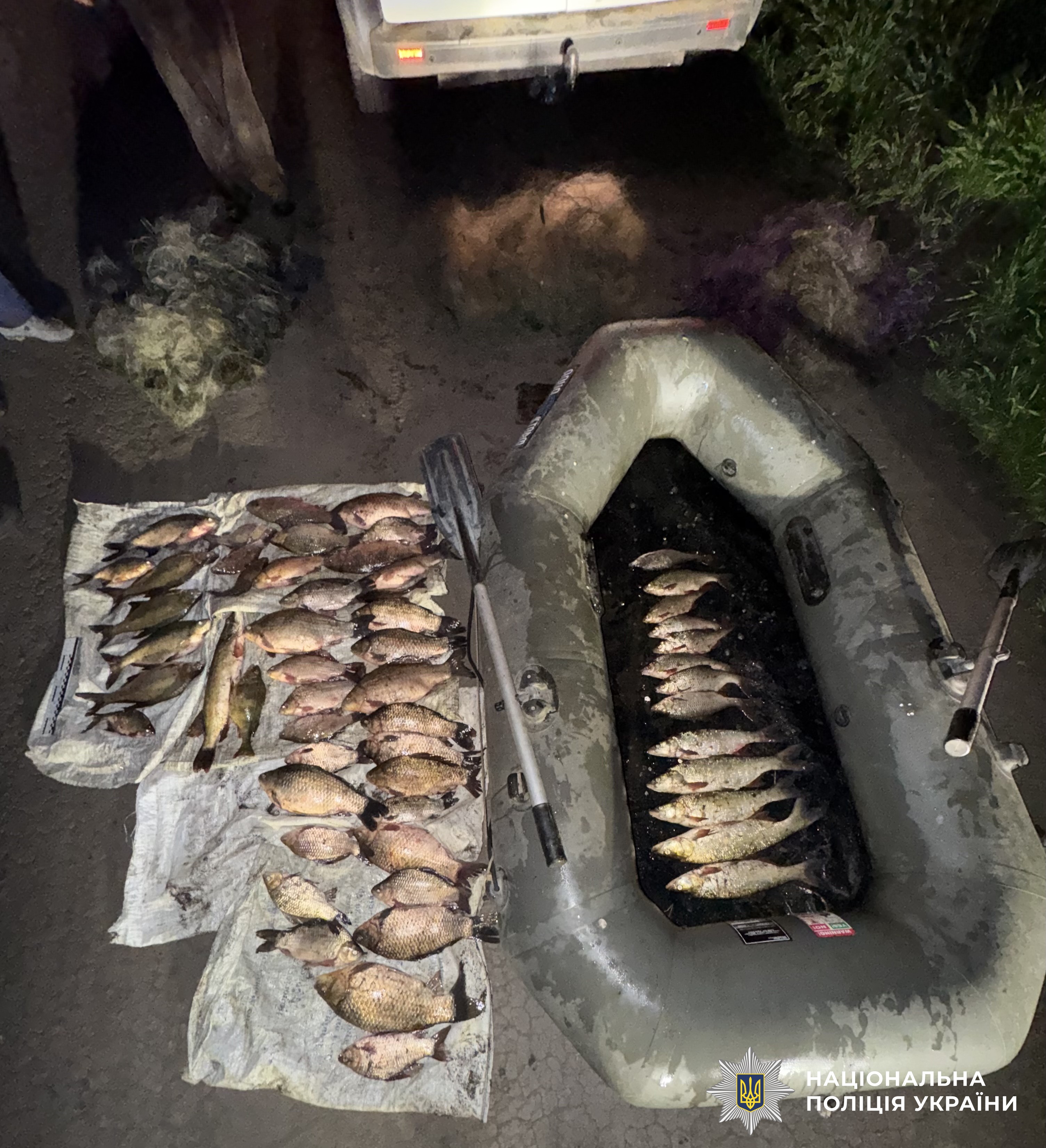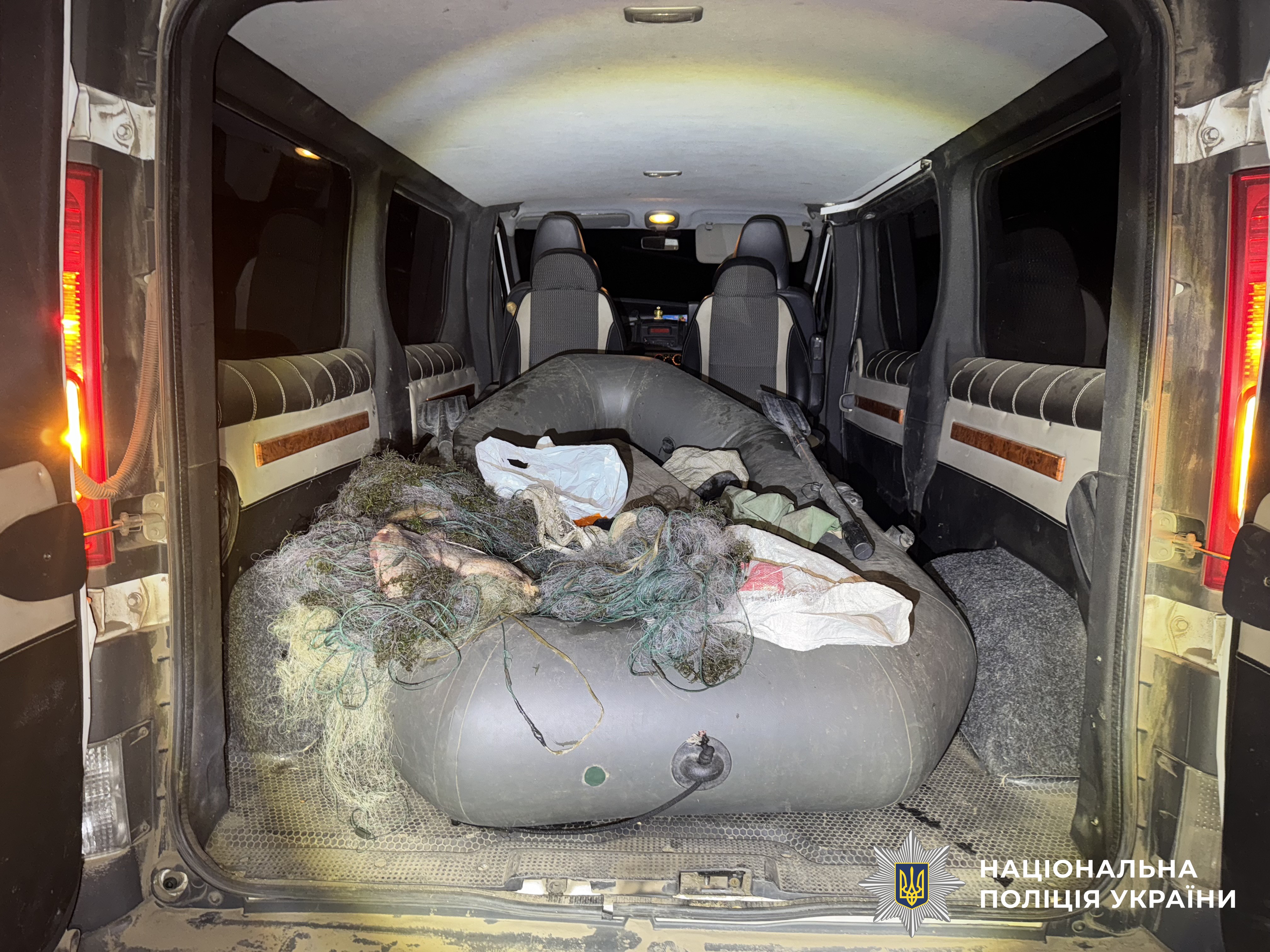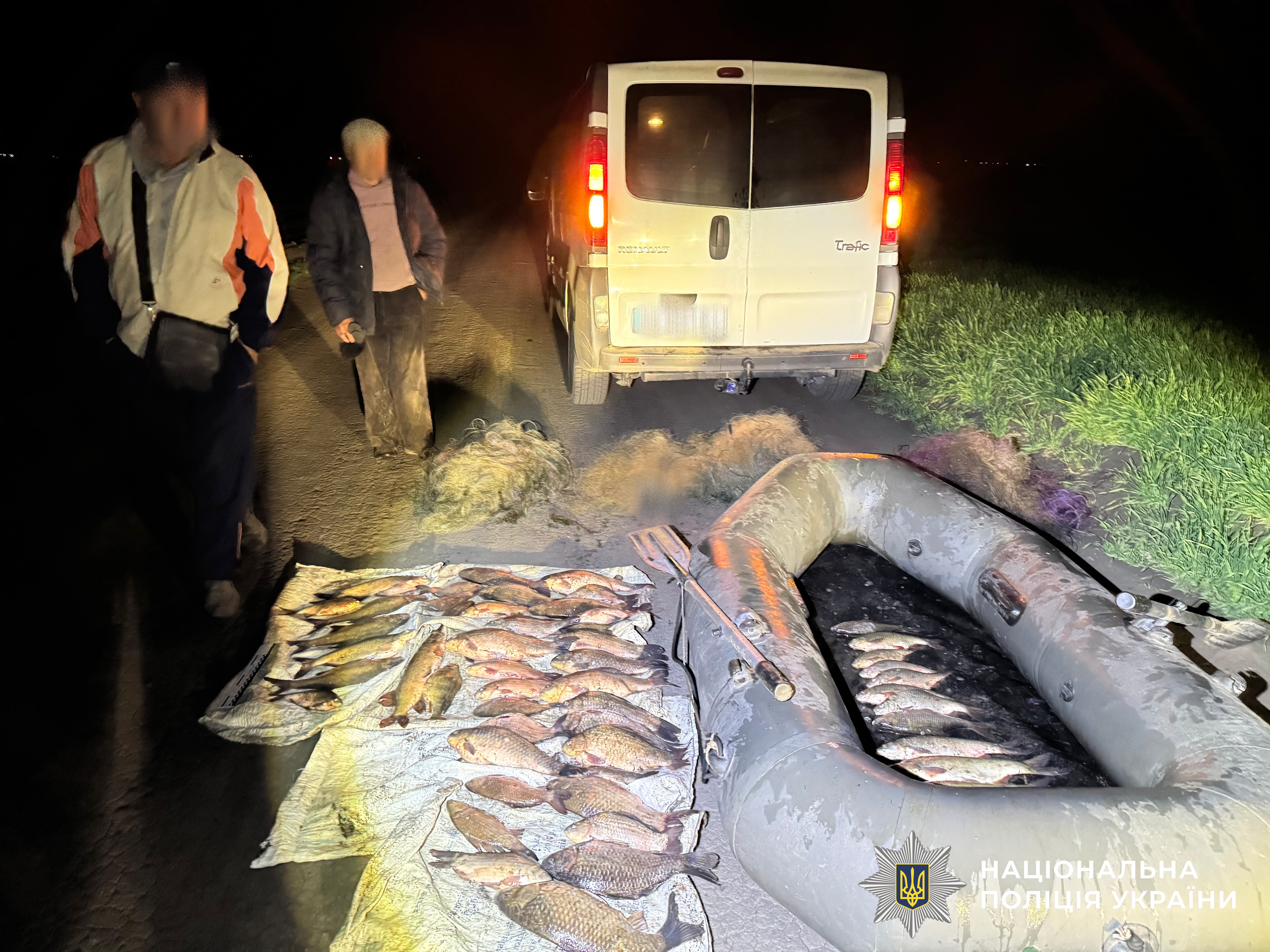 Дізнавачі вилучили у правопорушників мікроавтобус, човен, троє сіток та 60 рибин (карась, окунь, лящ, щука, плотва, білизна).