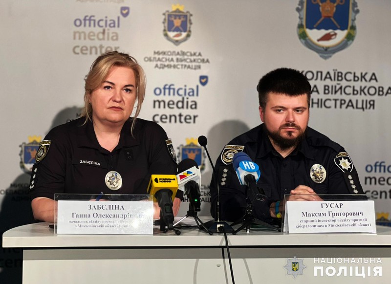Про шахрайства та їх протидію у період воєнного стану в офіційному Медіа центрі Миколаївської обласної військової адміністрації розповідали начальник Ганна Забєліна та старший інспектор Максим Гусар відділу протидії кіберзлочинам у Миколаївській області Департаменту кіберполіції Національної поліції України.