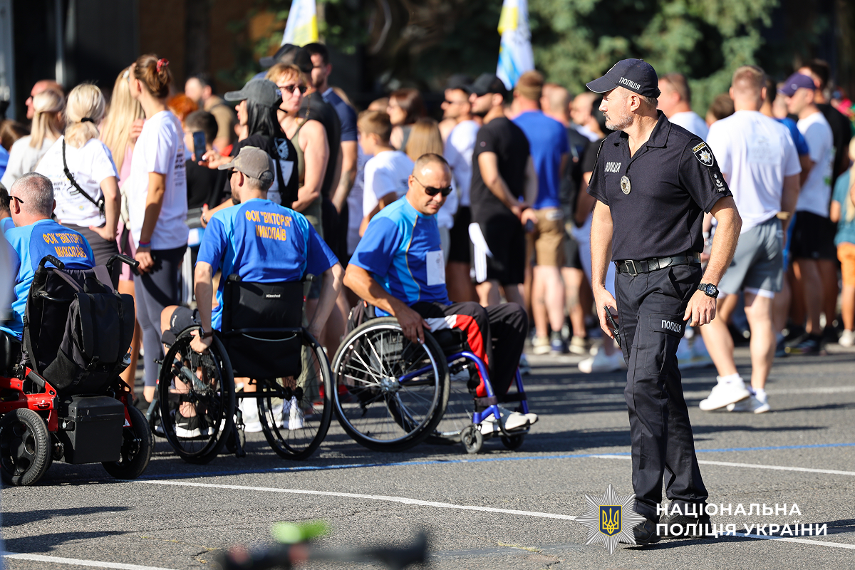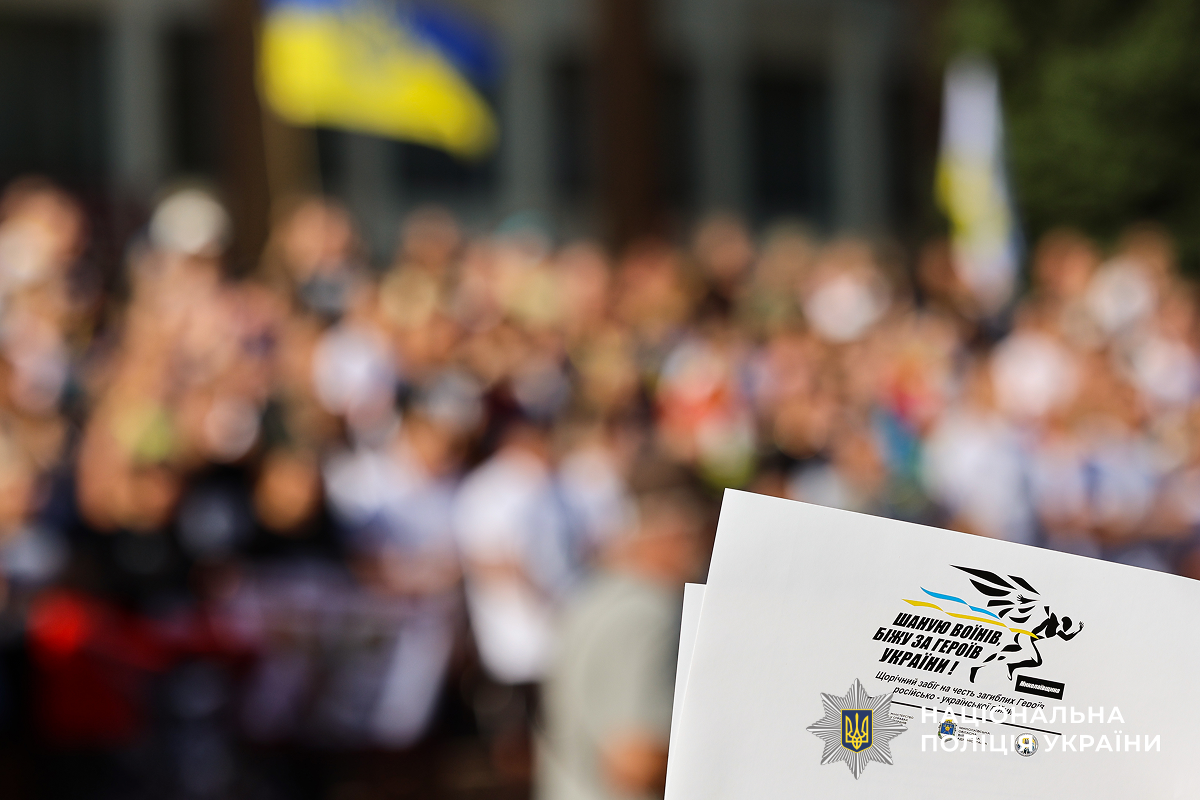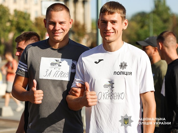 Поліцейські, які брали участь у заході, обирали конкретного загиблого Захисника, на честь якого долали дистанцію. На їхніх футболках були закріплені імена Героїв, захисників і захисниць України, близької та незнайомої людини. Це особистий жест вдячності та пам’яті, що має величезне значення для родин полеглих та й самих поліцейських, оскільки серед загиблих героїв є багато правоохоронців, які віддано несли службу, боронячи державу та громадян.