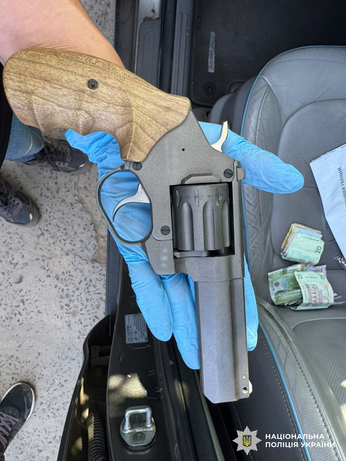 Коли потерпілий відмовився платити, вимагачі почали погрожувати та бити його, один із зловмисників дістав пістолет та здійснив постріли вгору, а потім навів зброю на чоловіка.
