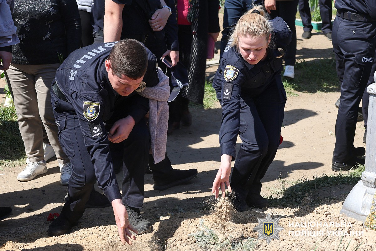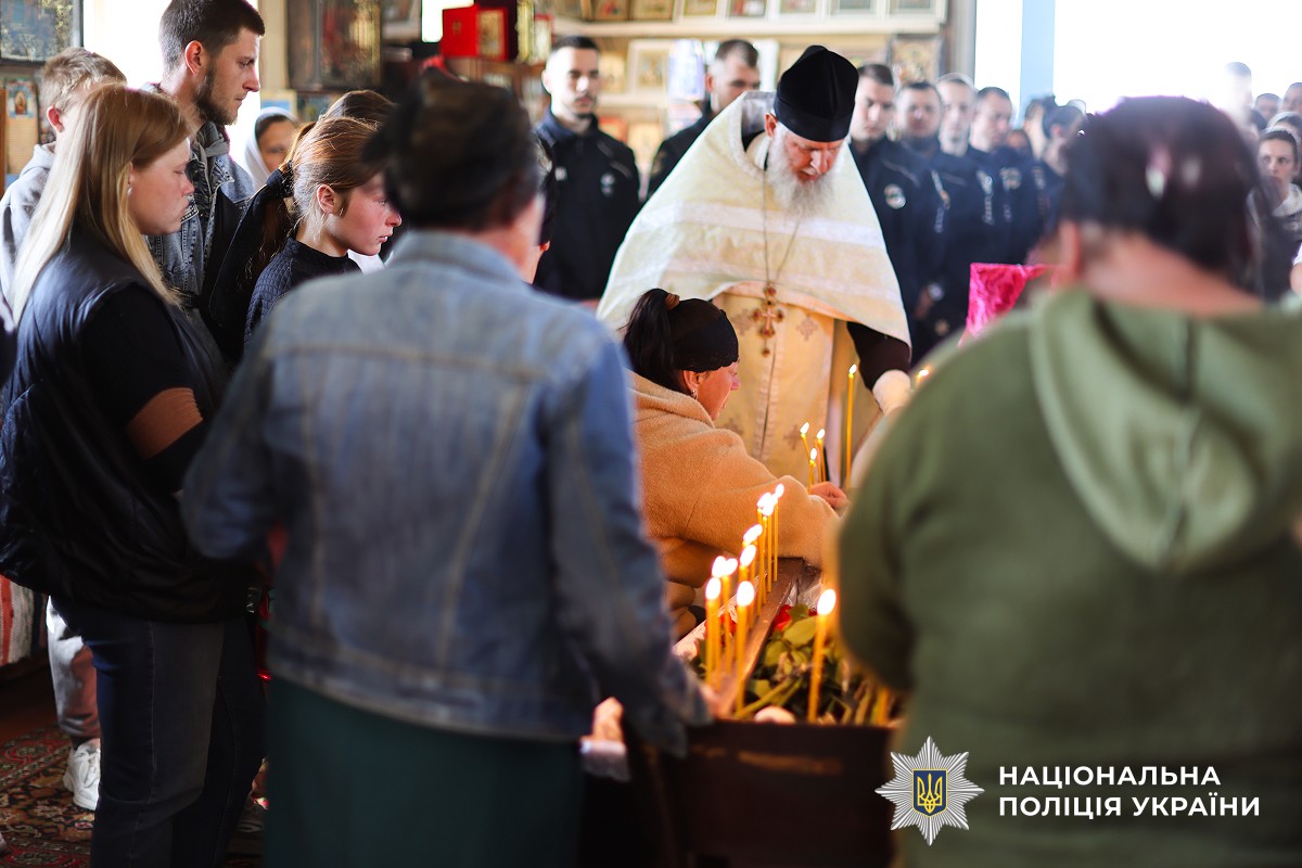Сьогодні, попрощатися із загиблим та віддати останню шану прийшли рідні, друзі та колеги на чолі із заступником начальника обласного главку поліції Олексієм Попковим.