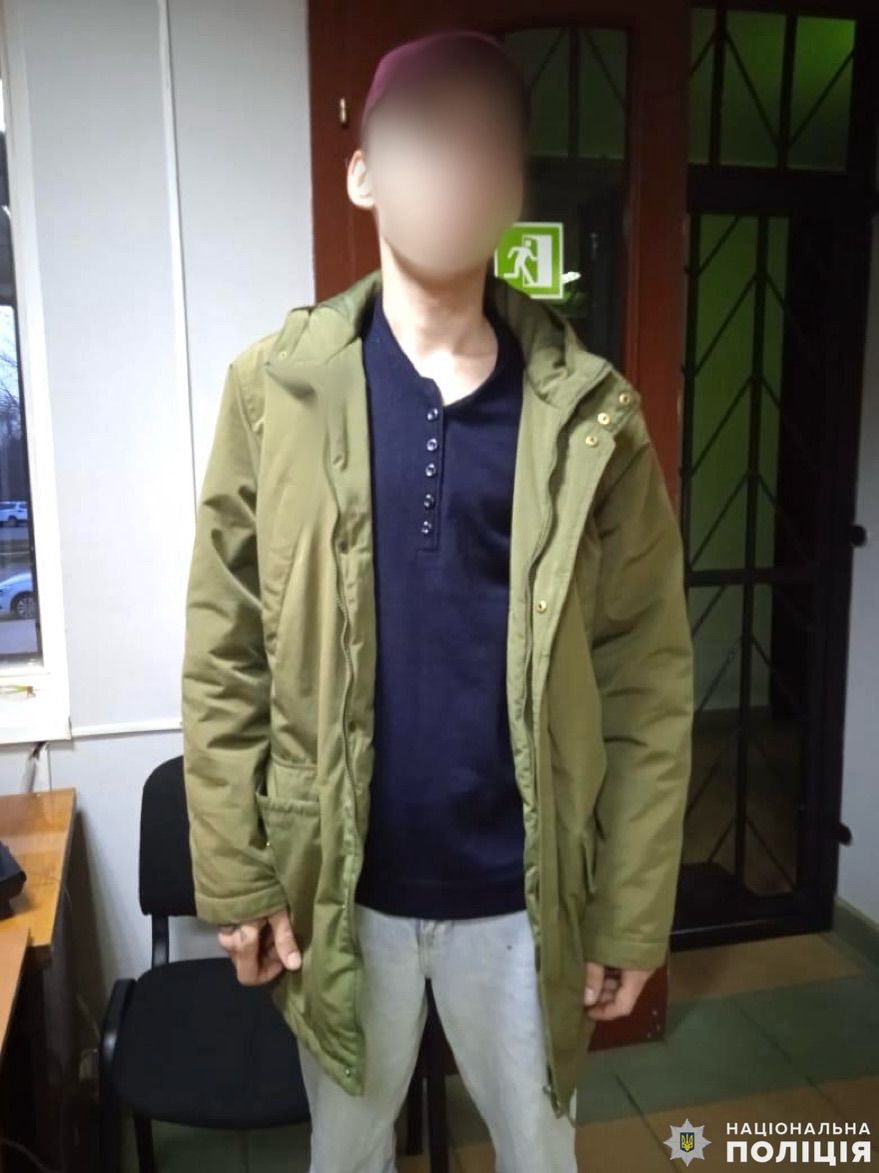 Провівши низку першочергових розшукових заходів, у тому числі і аналіз записів камер відеоспостереження, та отримавши детальний опис молодика, поліцейські виявили його на одній із вулиць міста. Зловмисником виявився 22-річний місцевий мешканець, який раніше притягувався до відповідальності за вчинення майнових злочинів.