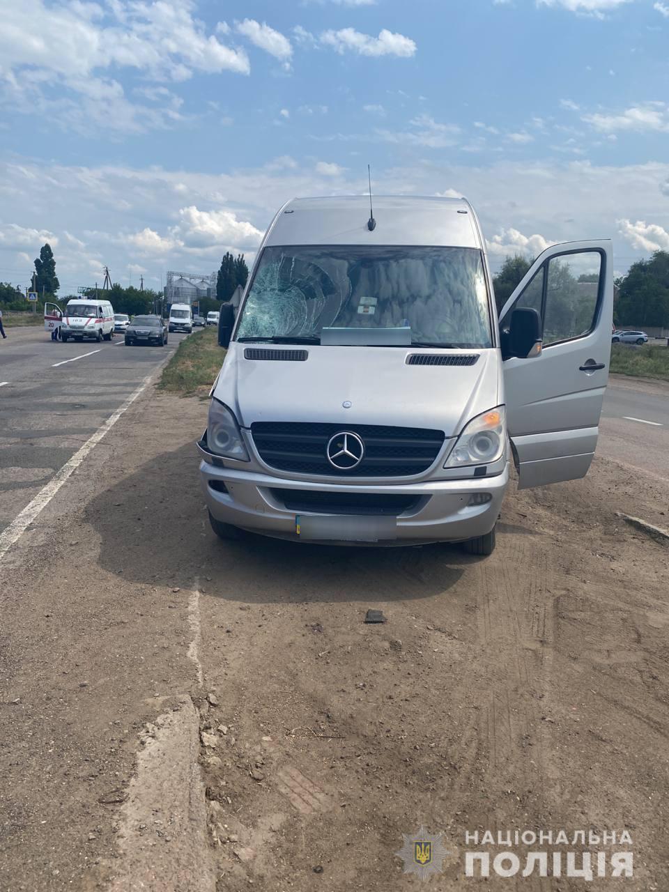 Сьогодні, 3 серпня, близько 13:36 на 216 км автодороги Н-24 "Благовіщенське-Миколаїв" в с. Костантинівка (Новодеський район) в районі нерегульованого пішохідного переходу 37-річний водій мікроавтобуса Mercedes Sprinter скоїв наїзд на чоловіка.