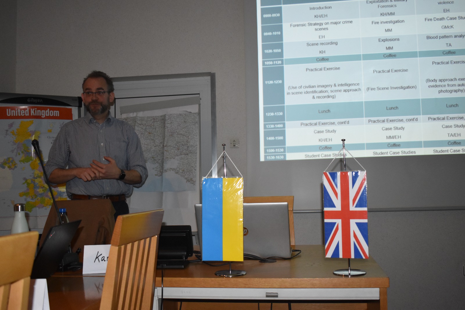 Курс навчання для українських поліцейських організовано за сприяння Міністерства внутрішніх справ Великої Британії, під керівництвом члена Королівського коледжу, координатора з питань ідентифікації жертв катастроф у Великій Британії, директорки криміналістичної служби поліції Лондонського Сіті Трейсі Александер та старшого наукового радника Національного агентства з боротьби зі злочинністю доктора Карла Гаррісона.