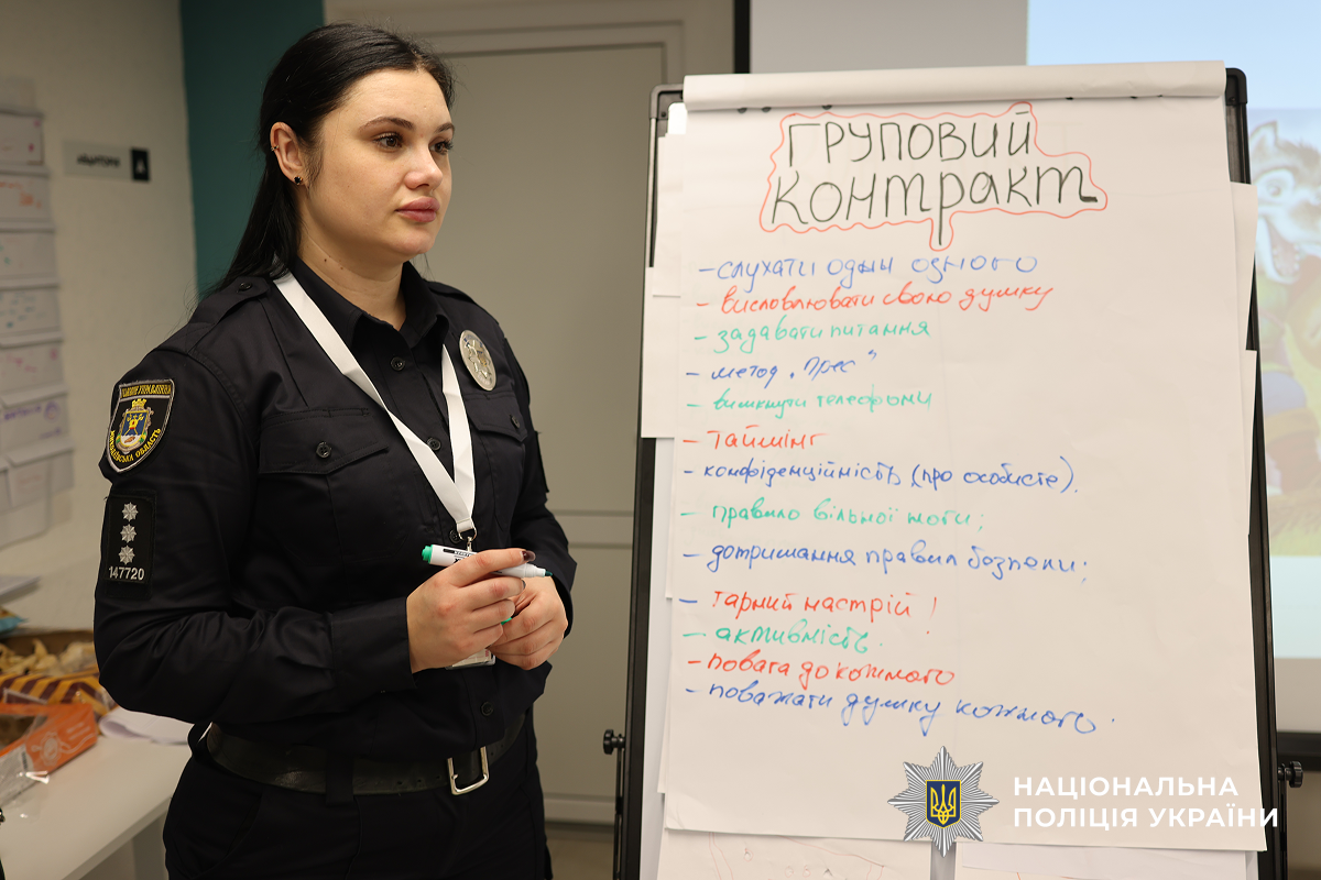 Інспектори ювенальної превенції за допомогою різноманітних вправ та рольових ігор навчали старшокласників слухати і чути одне одного, розуміти емоції співрозмовників та знаходити рішення навіть у найскладніших ситуаціях.