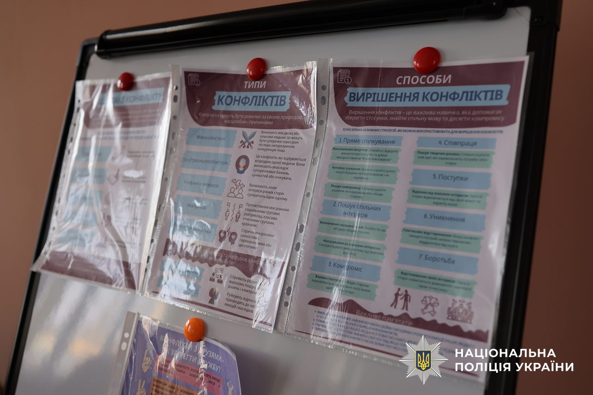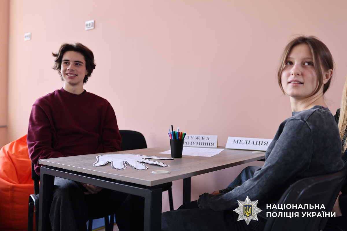 Інспектори ювенальної превенції обласного главку поліції завітали та ознайомилися з тим, як облаштували приміщення для шкільної служби порозуміння та як підлітки застосовують на практиці різноманітні вправи з медіації, навчилися слухати й чути співрозмовника, розпізнавати емоції та знаходити спільні рішення навіть у складних ситуаціях.