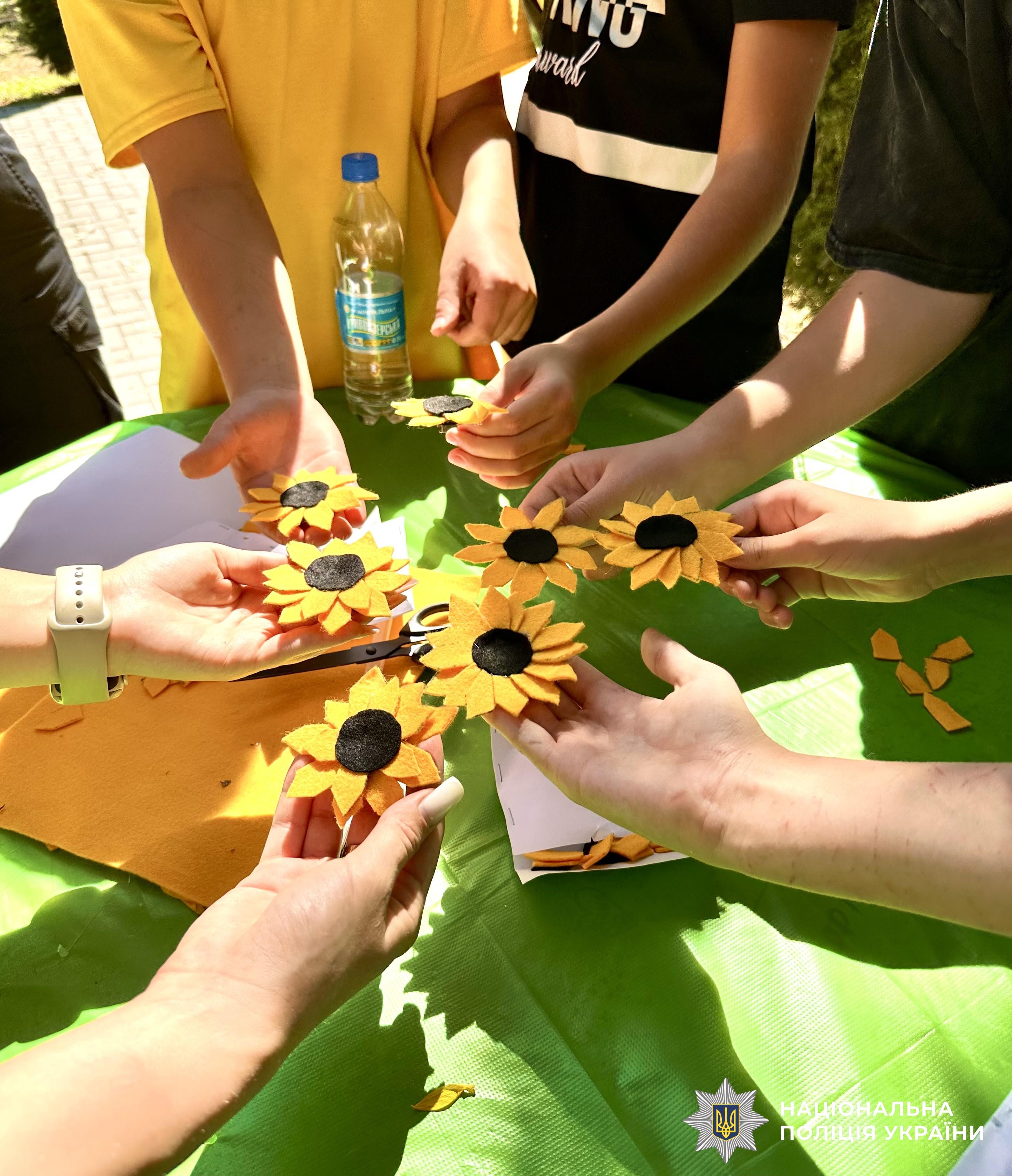Інспектори служби освітньої безпеки Первомайського райвідділу поліції з дітьми долучились до Всеукраїнської акції пам’яті «Сонях, власноруч виготовивши стилізовані квіти соняхів, що уособлюють у собі українську землю, яку захищають наші воїни ціною власного життя.