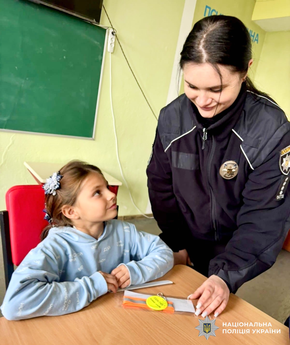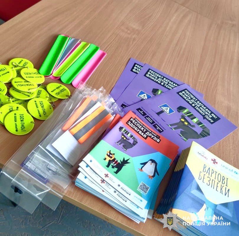 Наприкінці заходу кожен учень отримав від поліцейських корисні подарунки — флікери. Подібні заходи триватимуть і надалі, адже формування у дітей культури безпечної поведінки на дорозі є запорука життя та здоров’я.