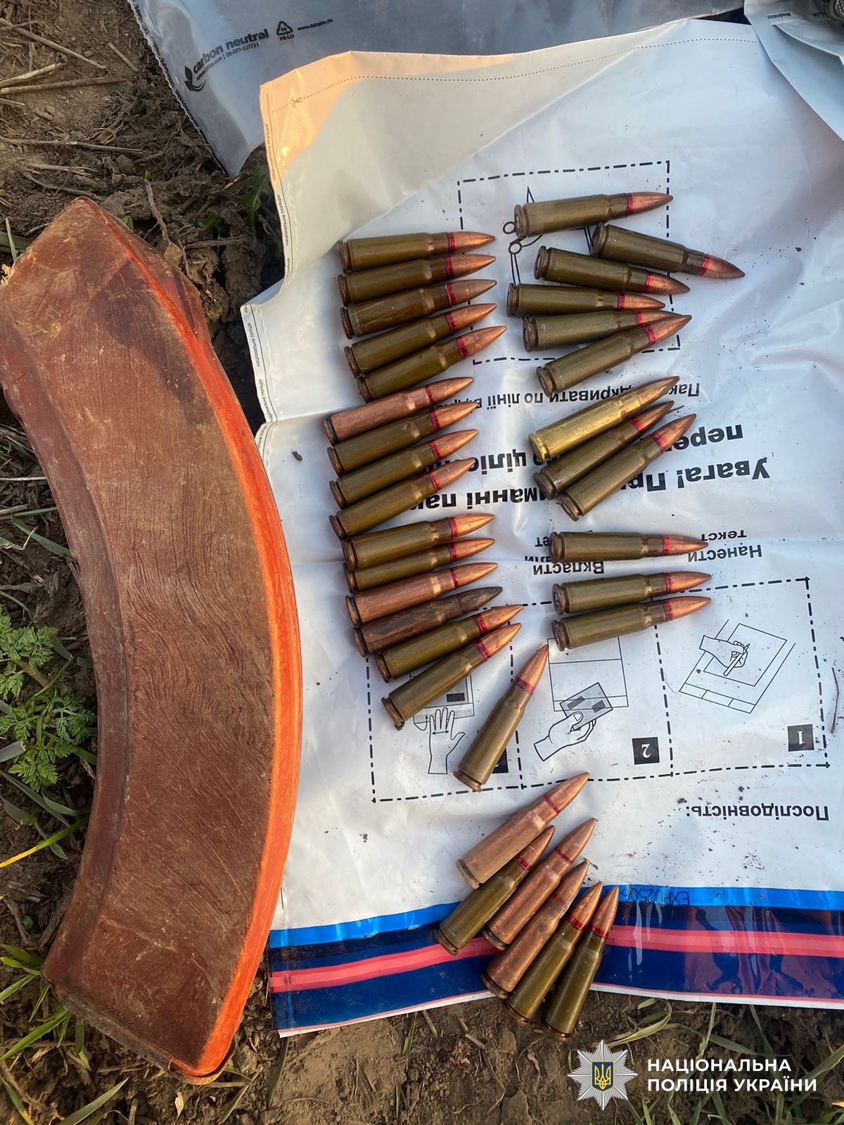 Автомат та чотири магазини, споряджені 60 набоями, які фігурант викинув, поліцейські розшукали за межами села Щербані.
