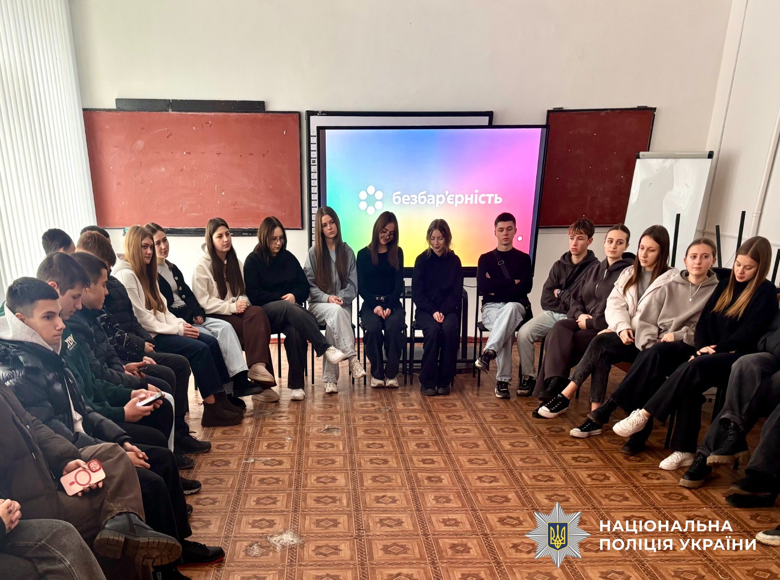 Різні можливості, але рівні права, толерантне ставлення до інших людей, подолання упереджень, стереотипів, ментальних та психологічних бар’єрів — саме ці питання учням старших класів ліцеїв Первомайської та Врадіївської громад підняли під час виховних годин офіцерки служби освітньої безпеки Первомайського райвідділу поліції.