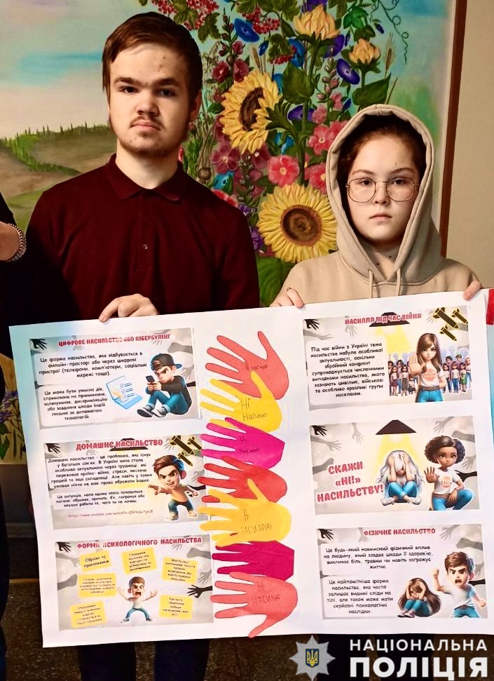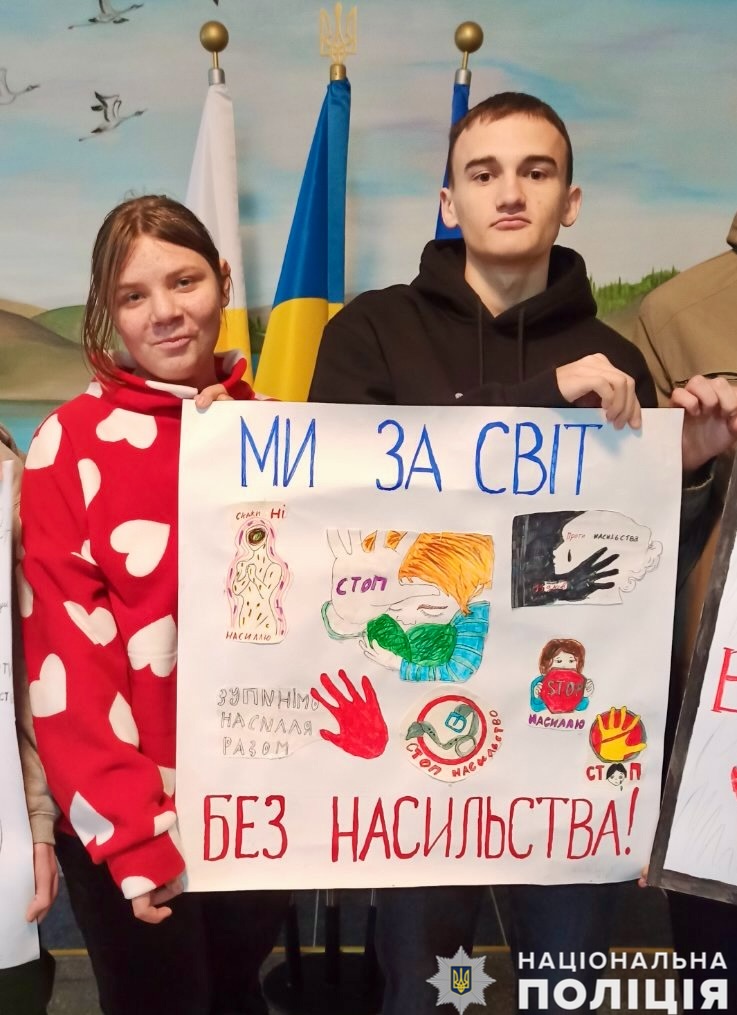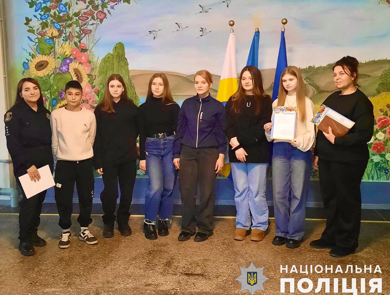 Так, для ліцеїстів у Врадіївці правоохоронці влаштували конкурс малюнків на тему протидії насильству. У своїх роботах діти зобразили негативне ставлення до проблеми жорстокості і знущань у суспільстві. У нагороду за свої творчі роботи усі учасники конкурсу отримали від поліцейської грамоти, а переможці ще й заохочувальні призи.