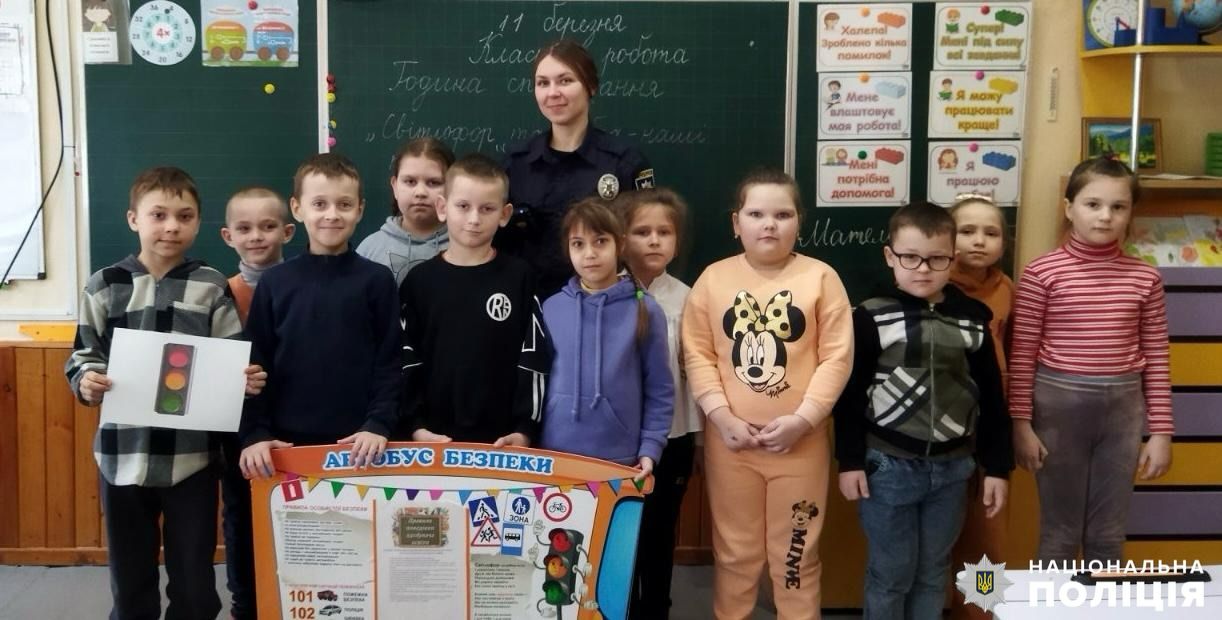 Світлофор і зебра – наші помічники: у Вознесенську поліцейська навчала учнів правил дорожнього руху