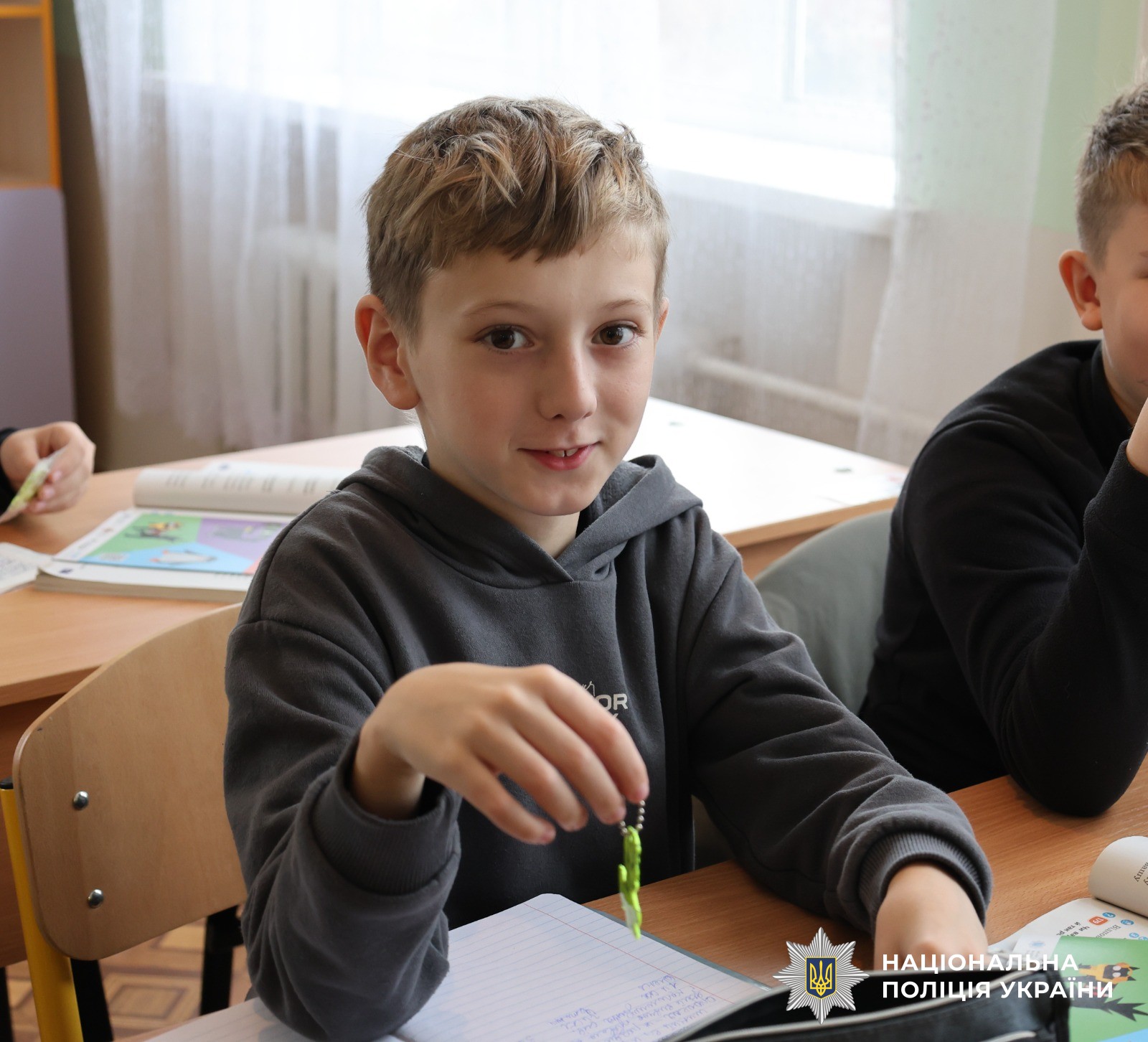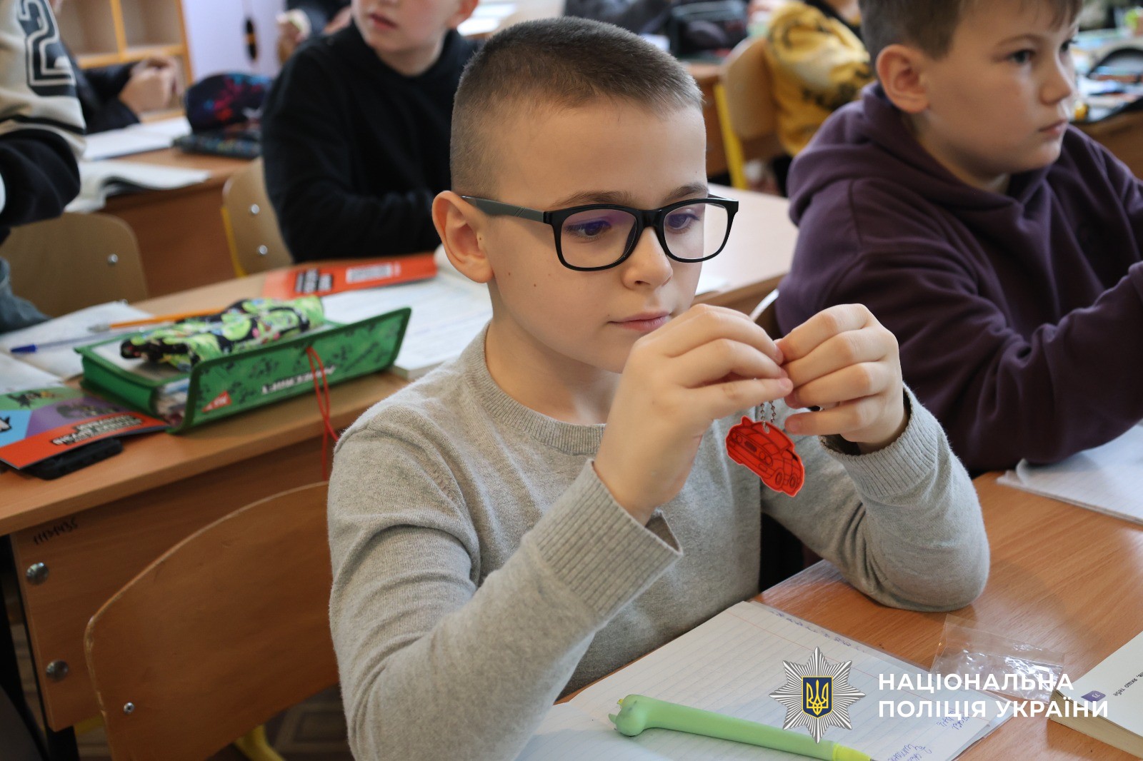 Наприкінці зустрічі поліцейська подарувала школярам світловідбивні підвіски та наголосила на важливості їх постійного використання.