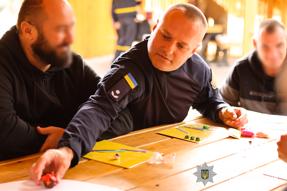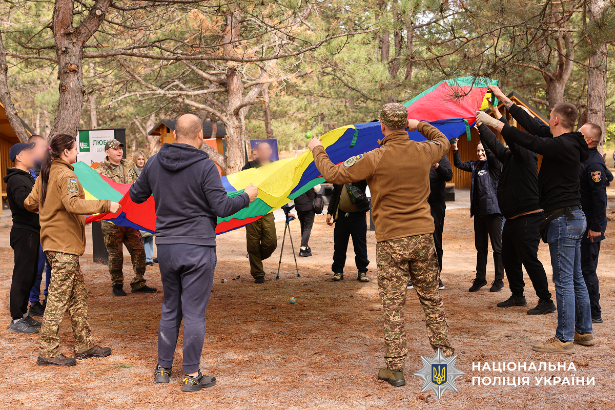 Поліцейські психологи, в рамках проєкту «Пункт психологічних практик» та з нагоди відзначення Всесвітнього дня психічного здоров’я, спільно з колегами із ДСНС, Національної гвардії, фахівцем сектору соціального захисту та супроводу постраждалих та членів їх сімей ДУ «Територіальне медичне обʼєднання МВС України по Миколаївській області» та кінологів обласного главку поліції, посеред лісу організували майстер-клас для бійців-правоохоронців.