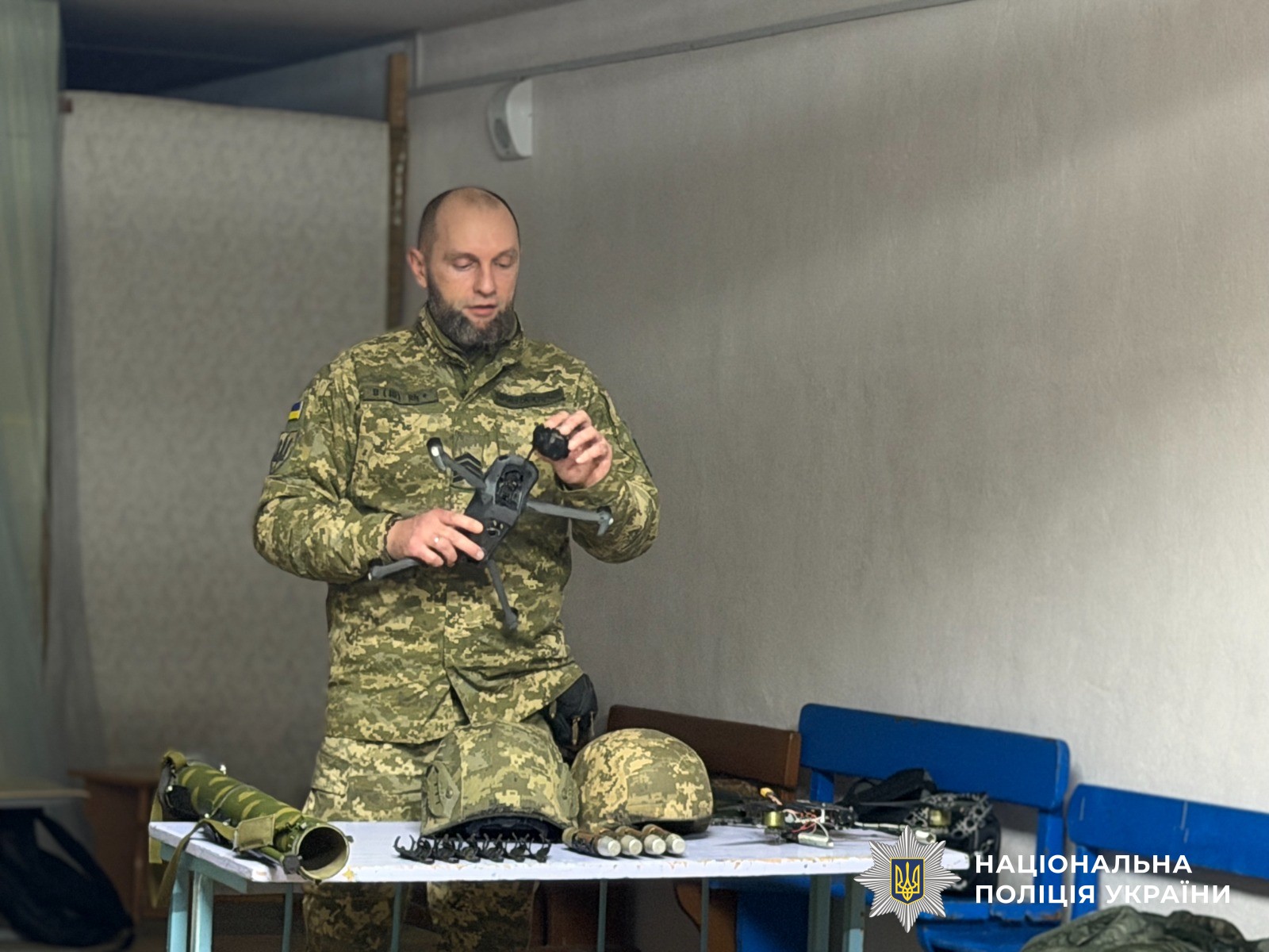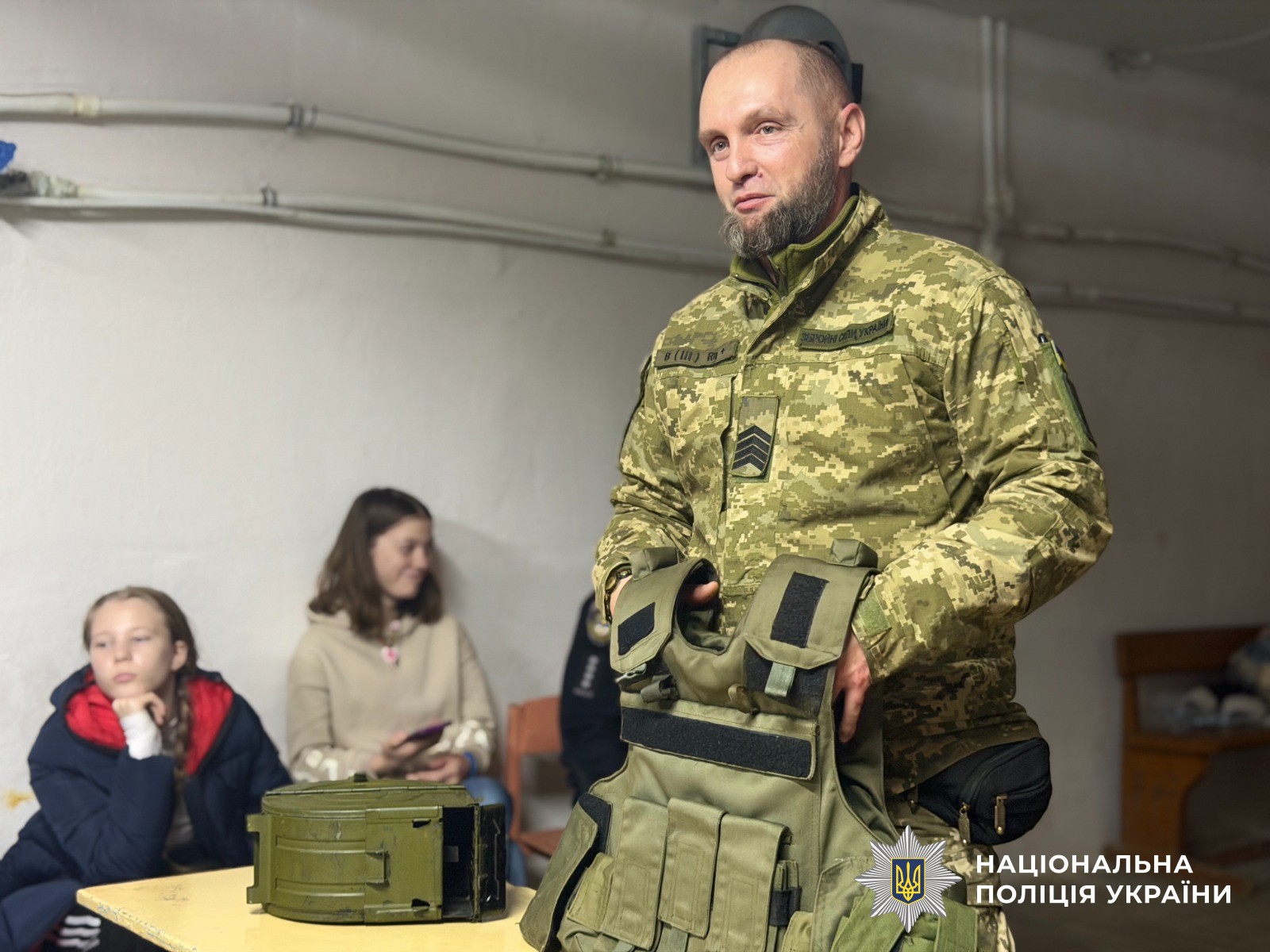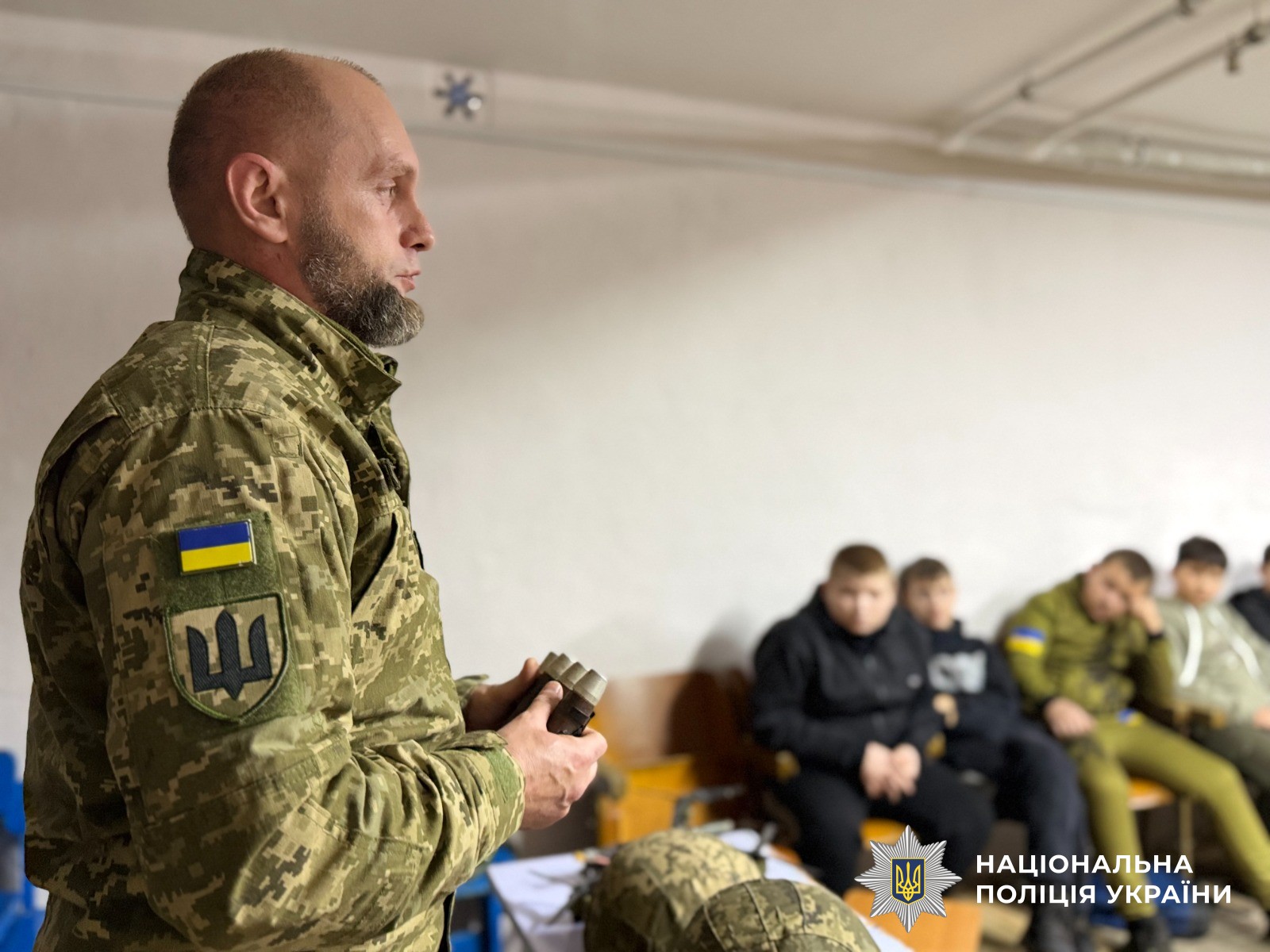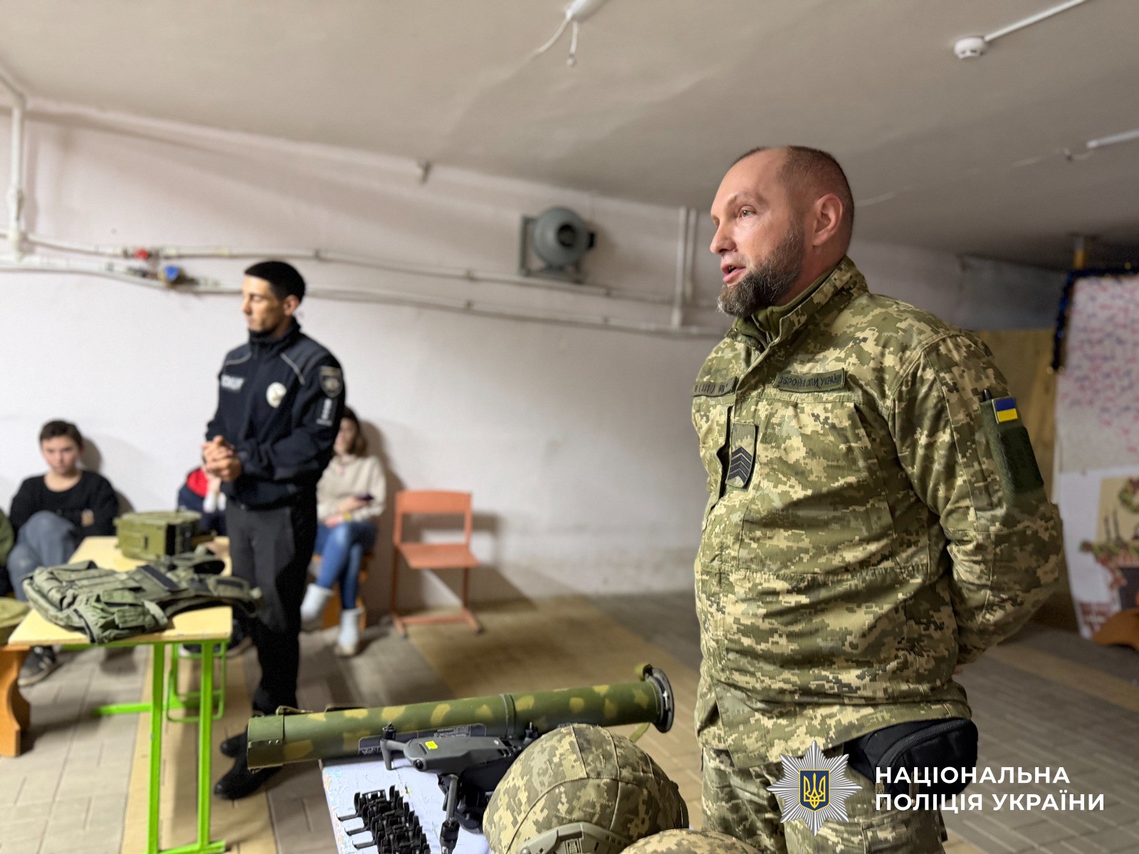 Для проведення уроку поліцейський запросив ветерана війни, який поділився своїм життєвим досвідом. Він розповів учням про важливість взаємоповаги, підтримки та активної громадянської позиції. Крім того, захисник продемонстрував макетну зброю та амуніцію з музею, пояснивши їх призначення та правила безпечного поводження. Він також закликав дітей підтримувати військових своїми малюнками, листами та іншими проявами уваги, підкресливши, що навіть маленькі знаки підтримки дуже важливі для захисників. Його історія та показовий матеріал стали живим прикладом мужності та відповідальності.
