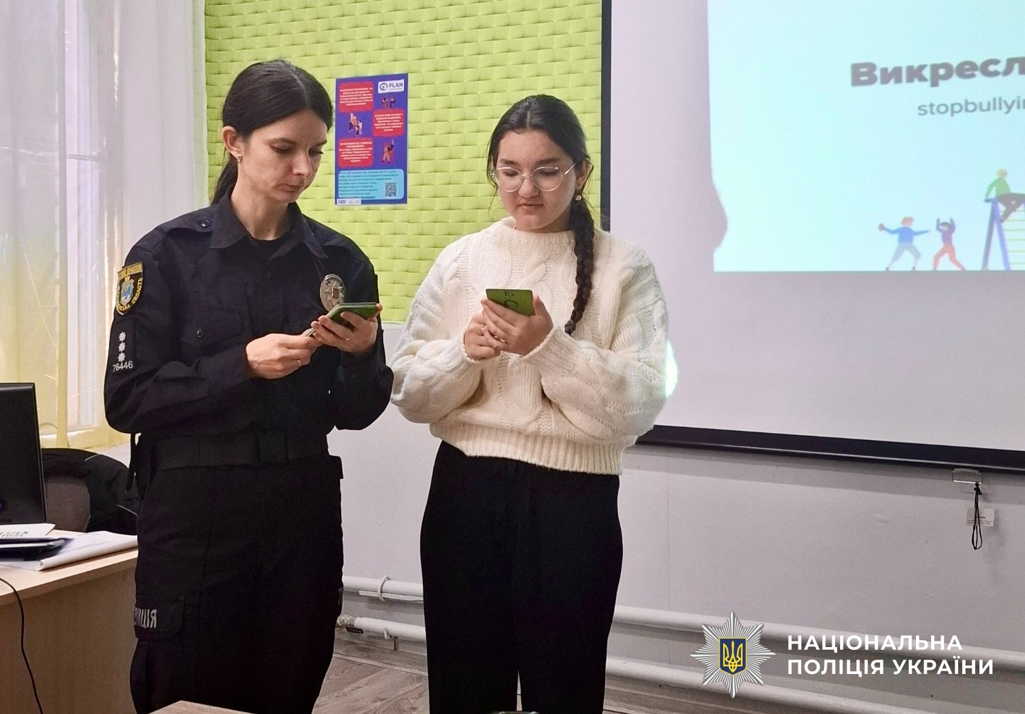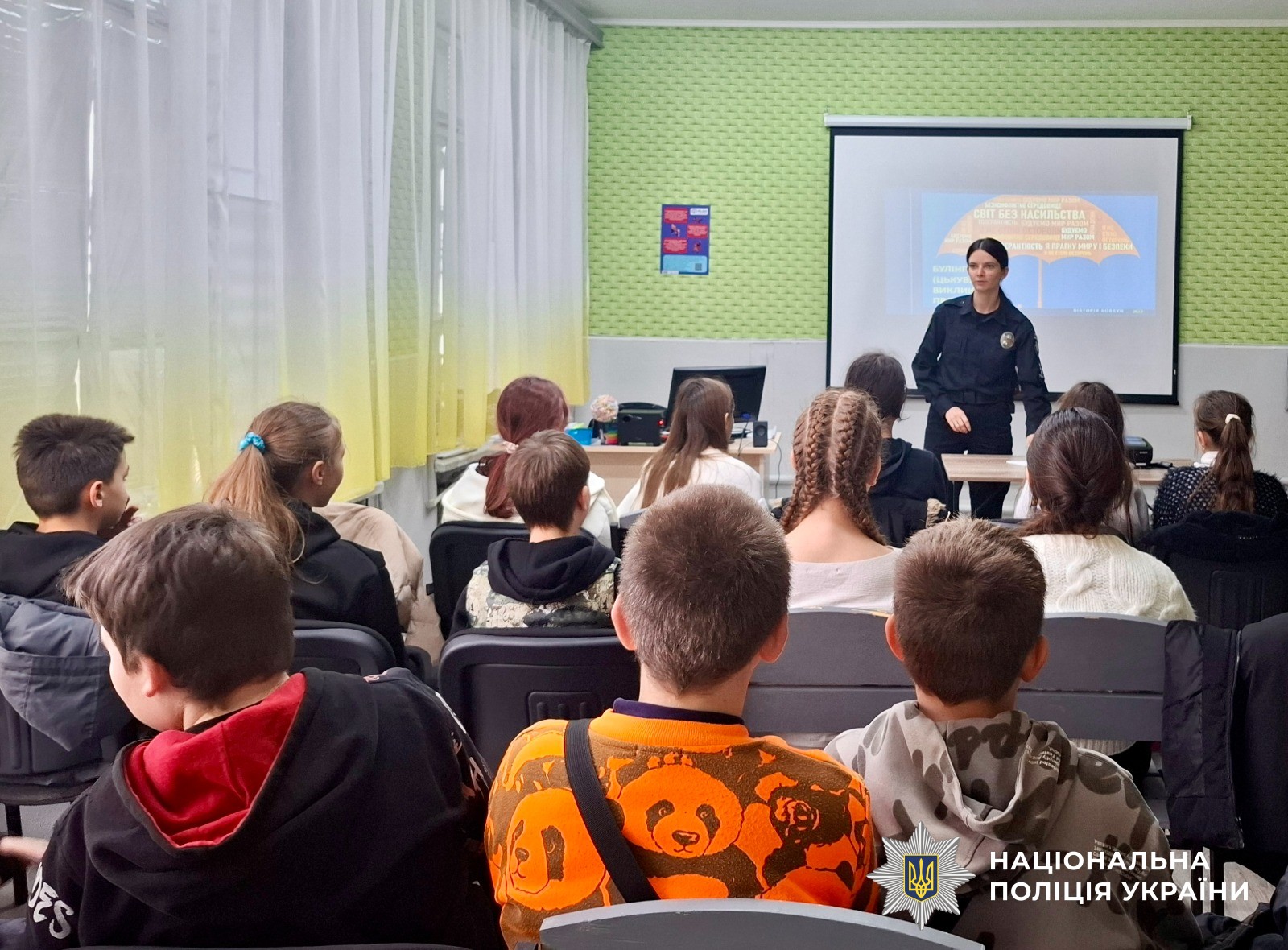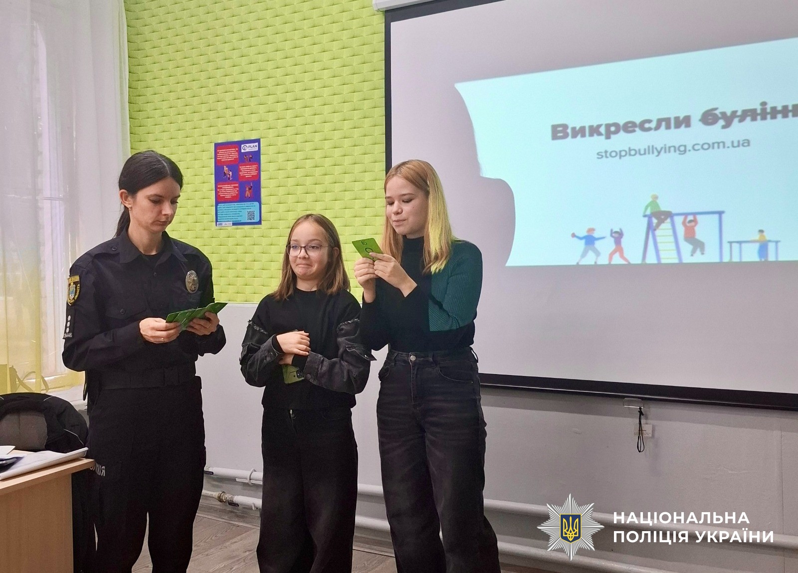 На прикладі навчального відео поліцейська пояснила дітям чим булінг відрізняється від звичайного конфлікту, його різновиди, наслідки і відповідальність. Націлила їх сприймати людей такими, які вони є, терпимо та з повагою ставитись до відмінностей, не цькувати та не знущатись над іншими, якщо навіть щось не подобається у їх поведінці. Закликала не бути пасивними спостерігачами за будь-яким з проявів насильства, а вчасно прийти на допомогу тим, хто її потребує.