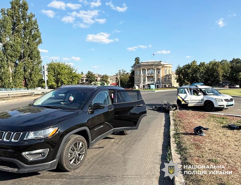 Вчора, 14 серпня, близько 16:50 на вулиці Грушевського у м. Первомайськ відбулось зіткнення між автомобілем Jeep Compass, під керуванням 22-річної жінки, та мотоциклом Lifan KPS 200, за кермом якого перебував 16-річний водій.