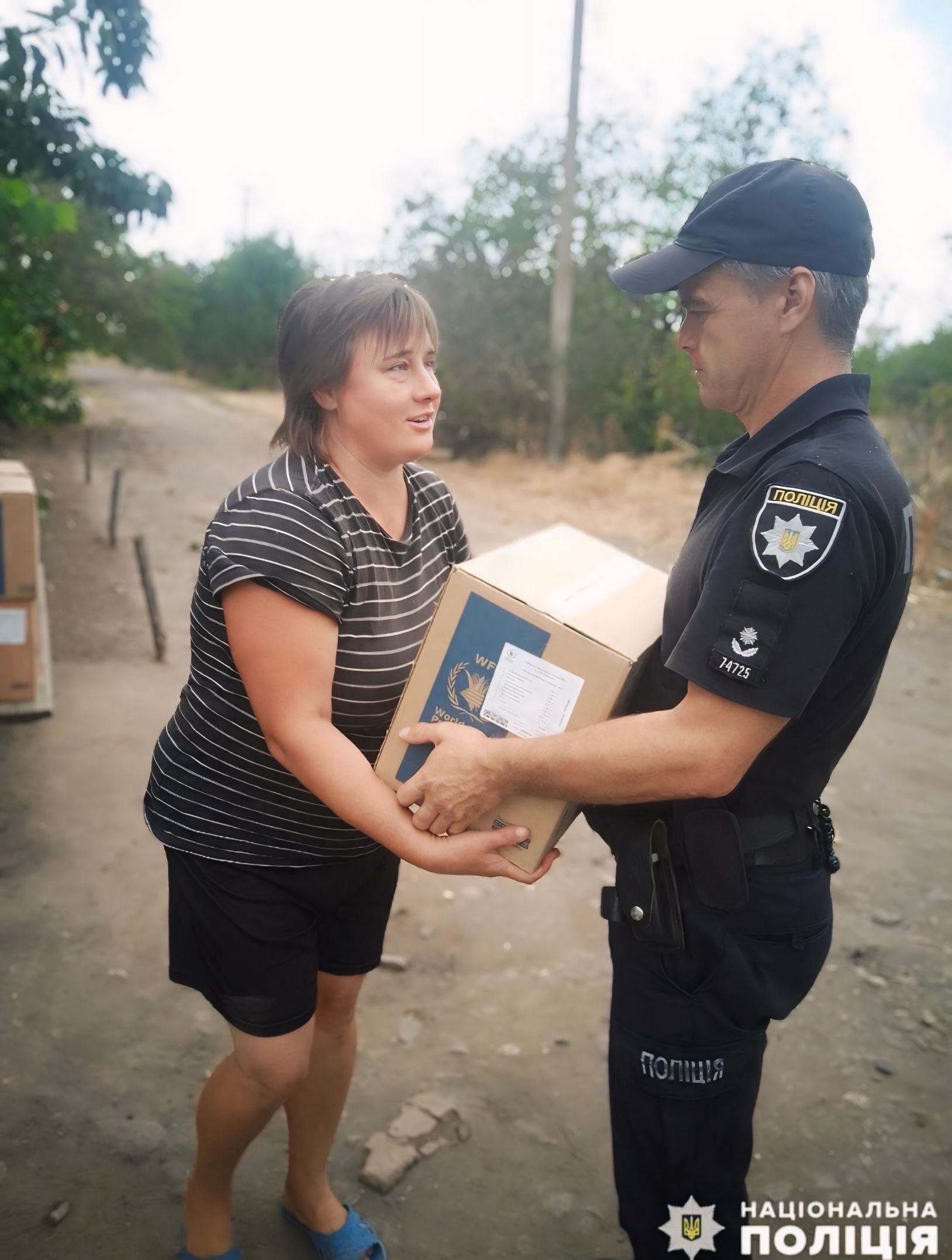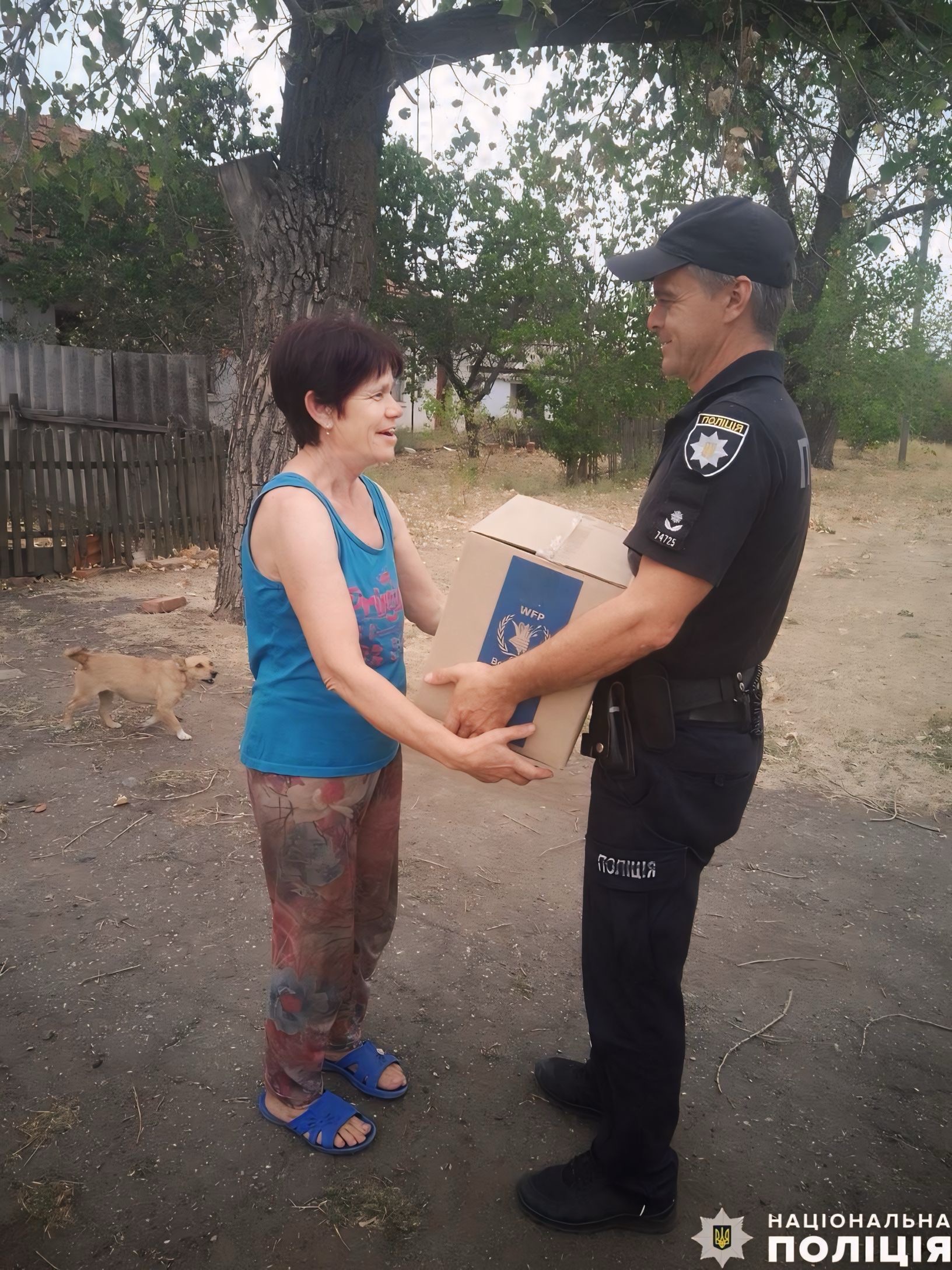 З огляду на це, поліцейський офіцер громади разом із фахівцем соціальної роботи з центру надання соціальних послуг Вільнозапорізької громади Тетяною Плютою відвідали та передали жителям села Богомази продуктову гуманітарну допомогу.