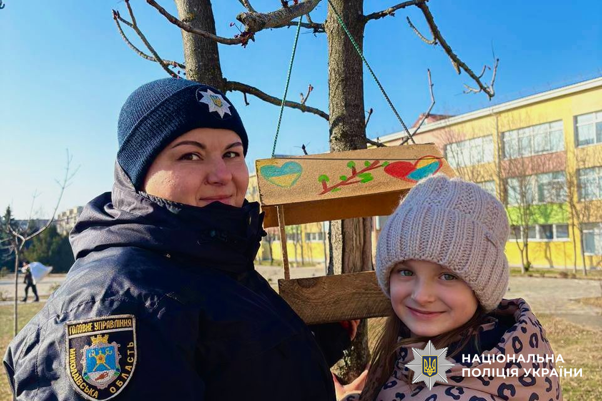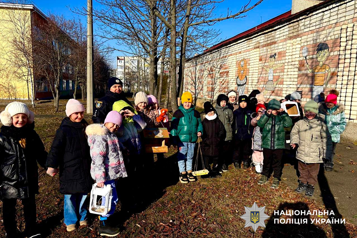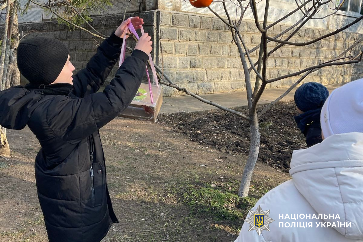 Турбота про птахів взимку: на Вознесенщині поліцейські навчали дітей піклуватись про природу
