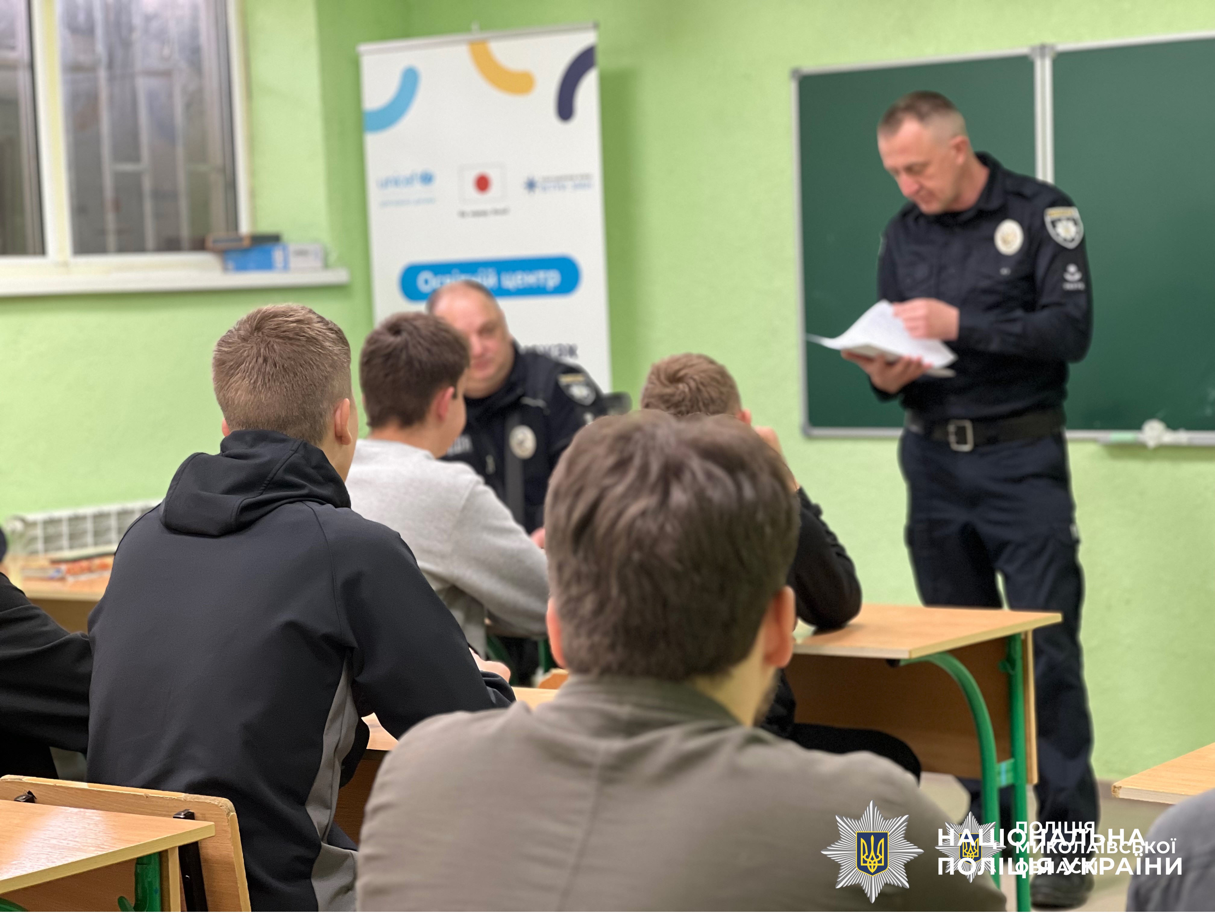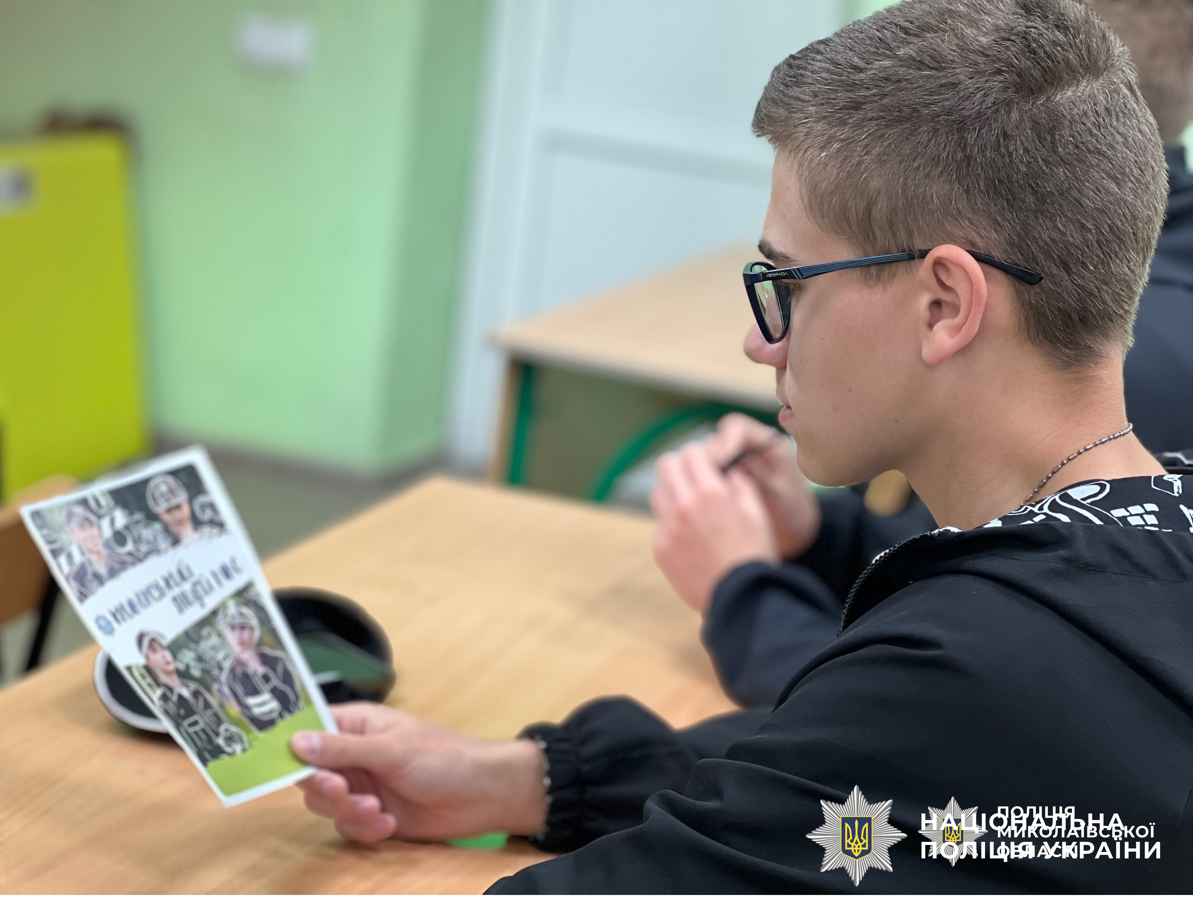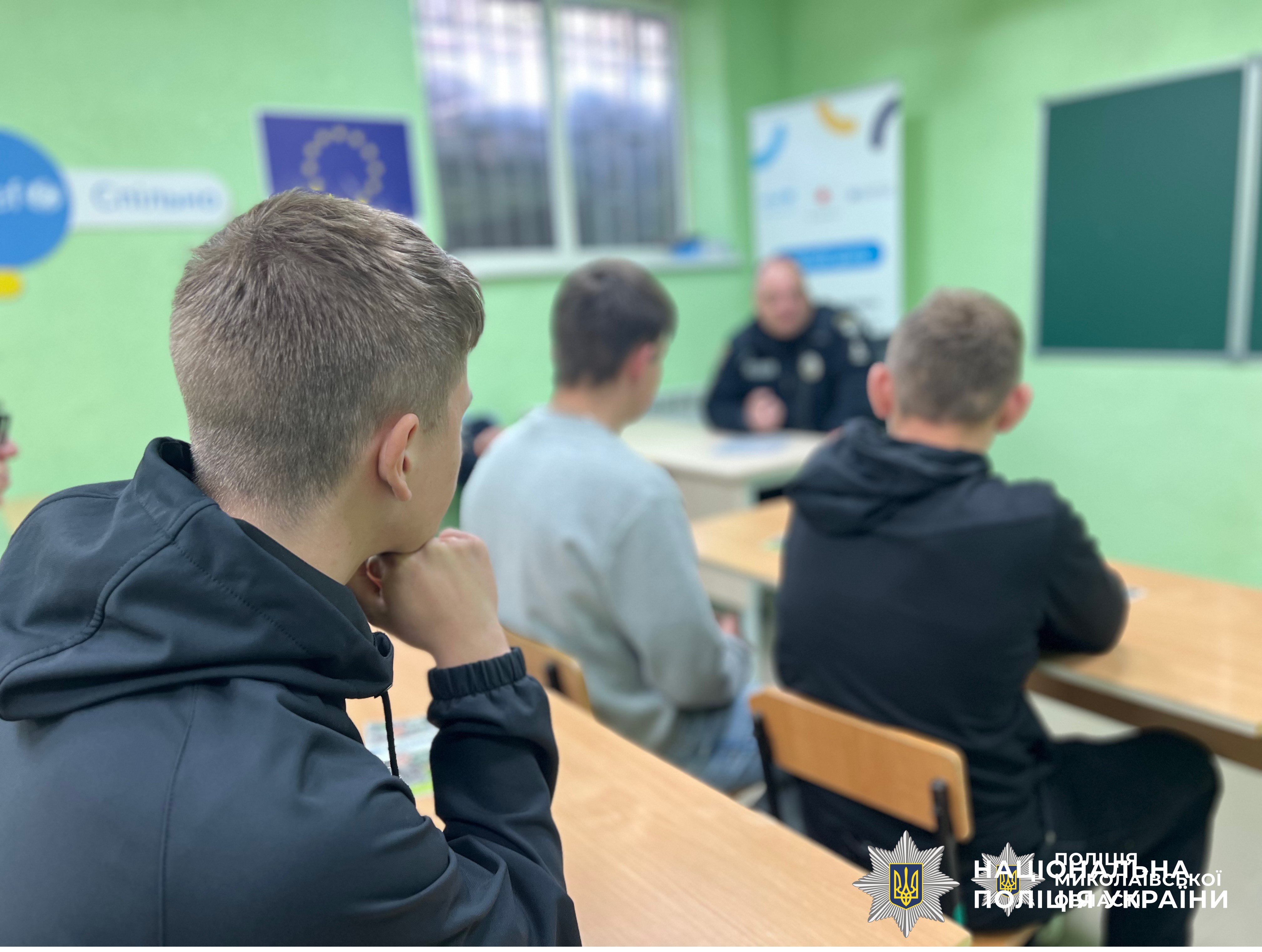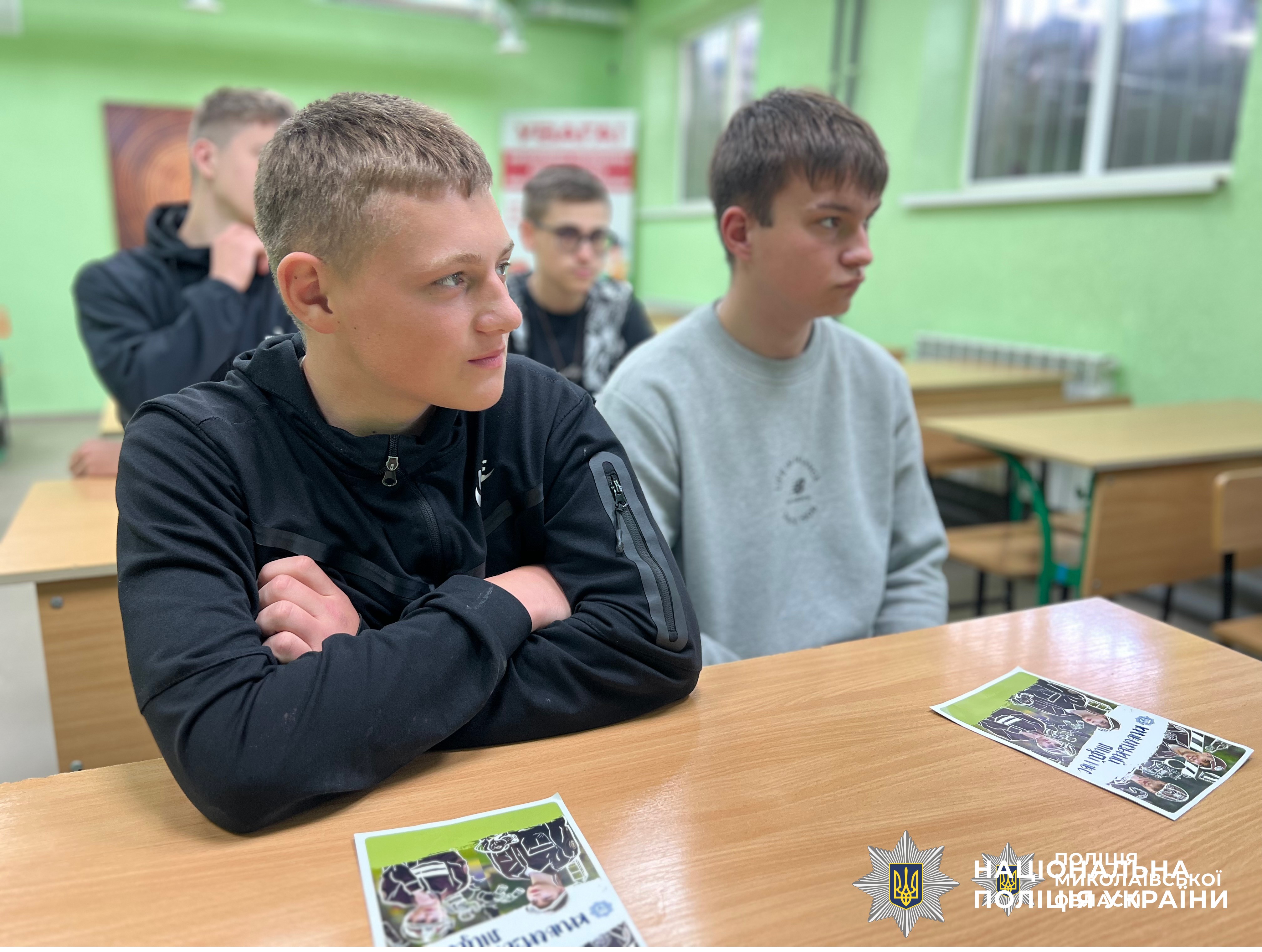 У Баштанці поліцейські розповіли старшокласникам про переваги навчання в ліцеях безпекового спрямування та національно-патріотичного виховання МВС України