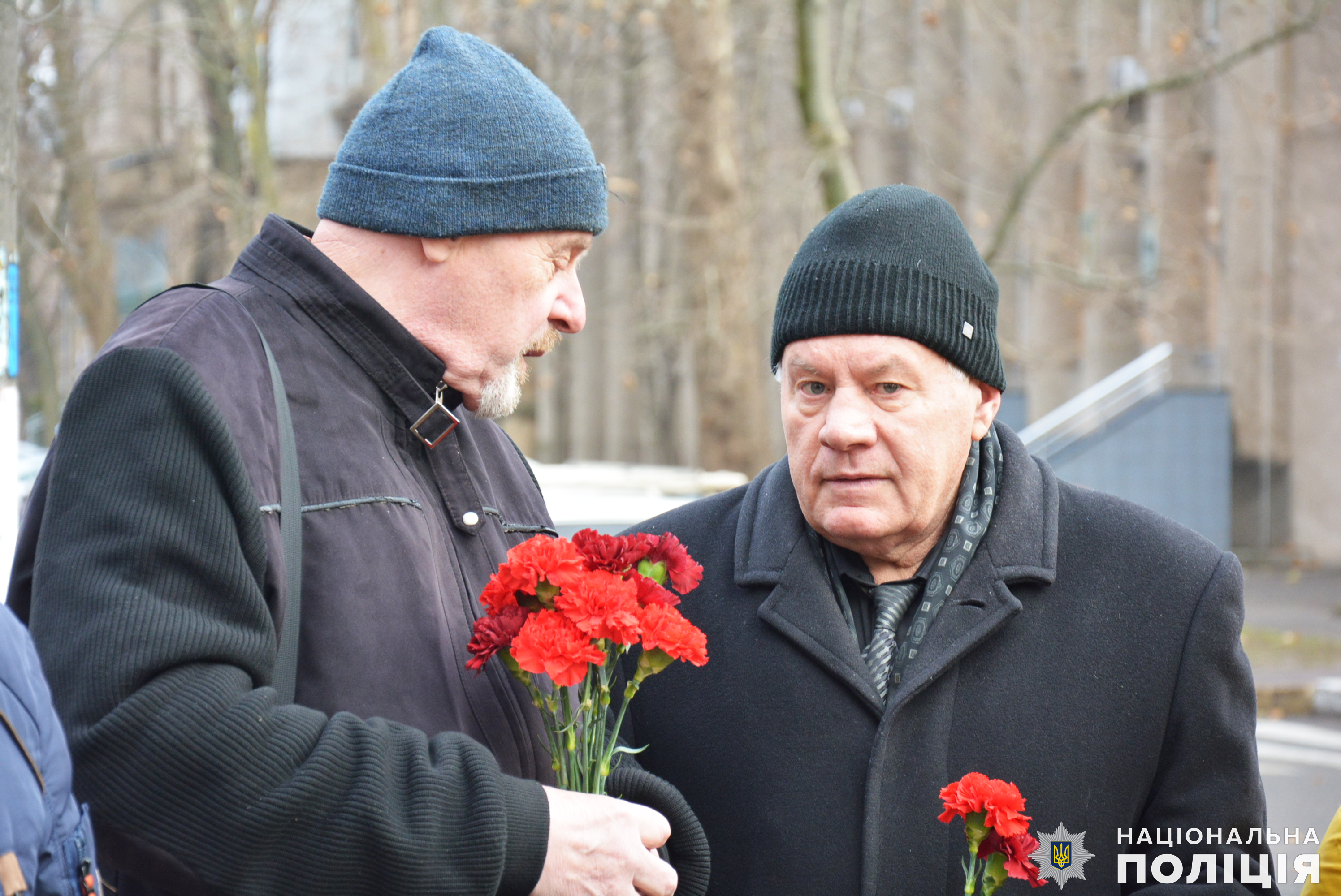До меморіалу загиблих під час виконання службових обов’язків колег присутні поклали квіти, віддаючи шану пам’яті кожному, хто втратив своє життя, захищаючи громадян від злочинності.
