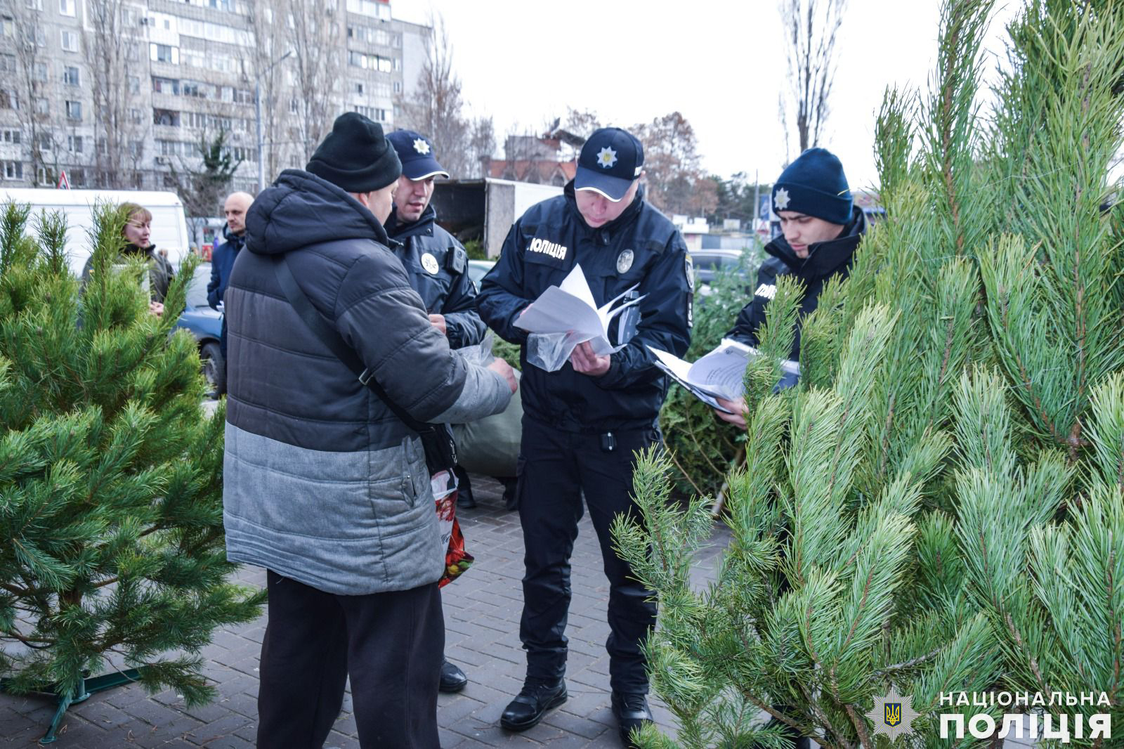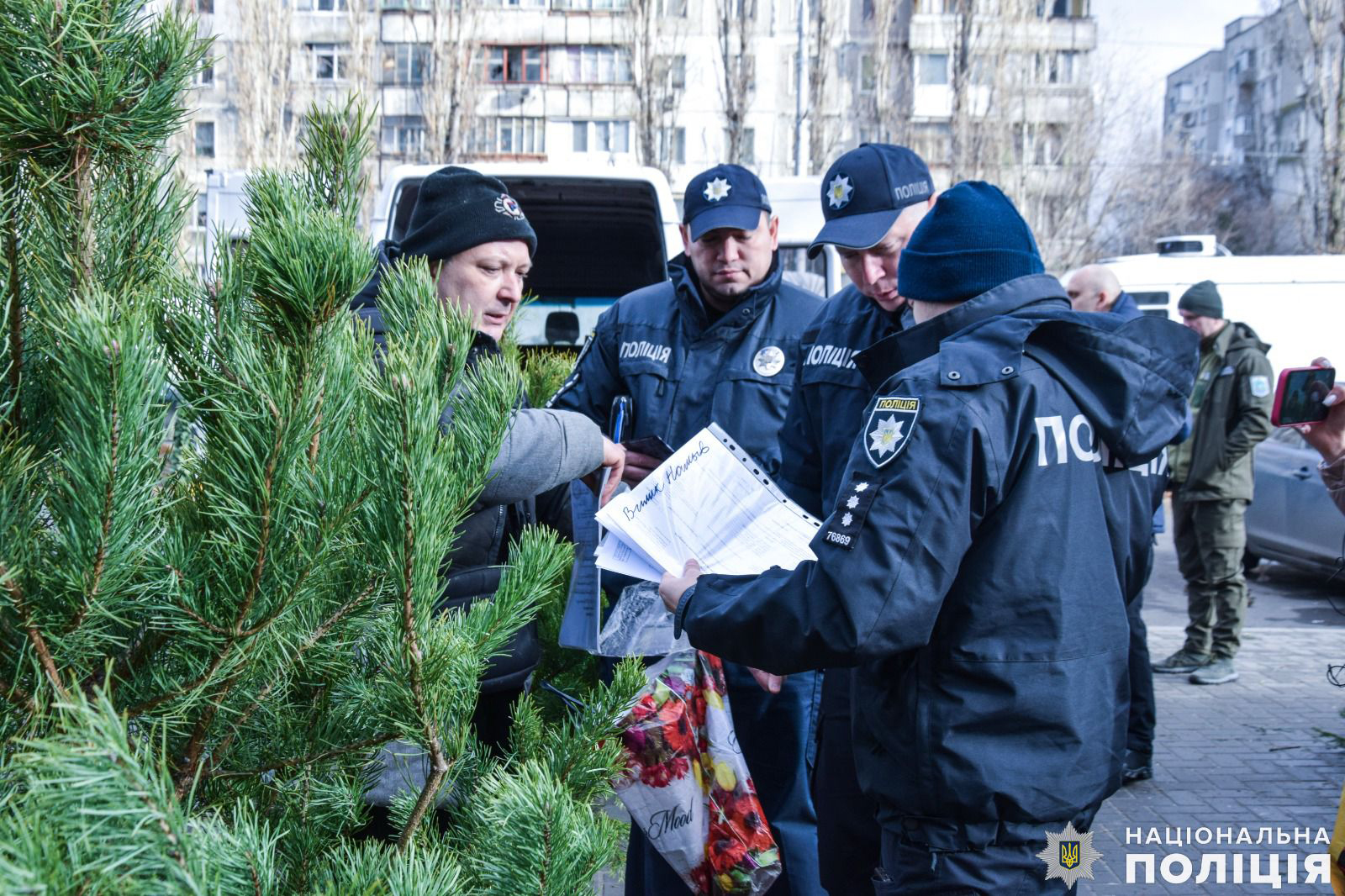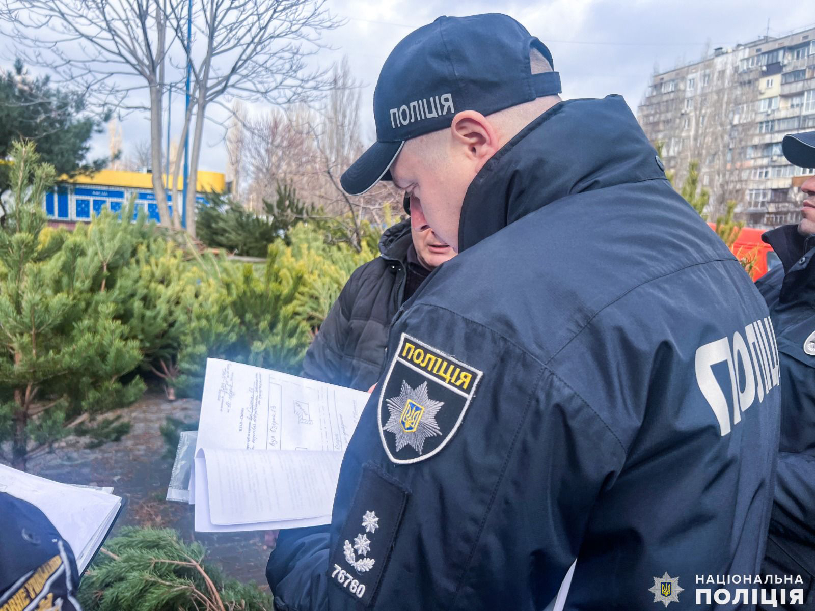 У Миколаєві поліцейські провели рейдові перевірки місць святкової торгівлі новорічними ялинками