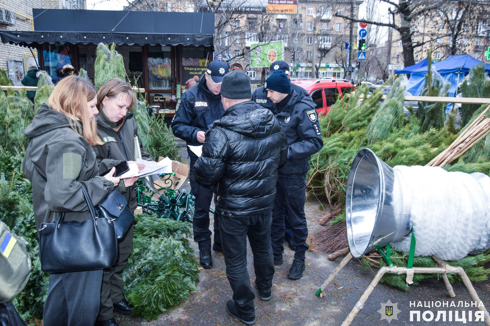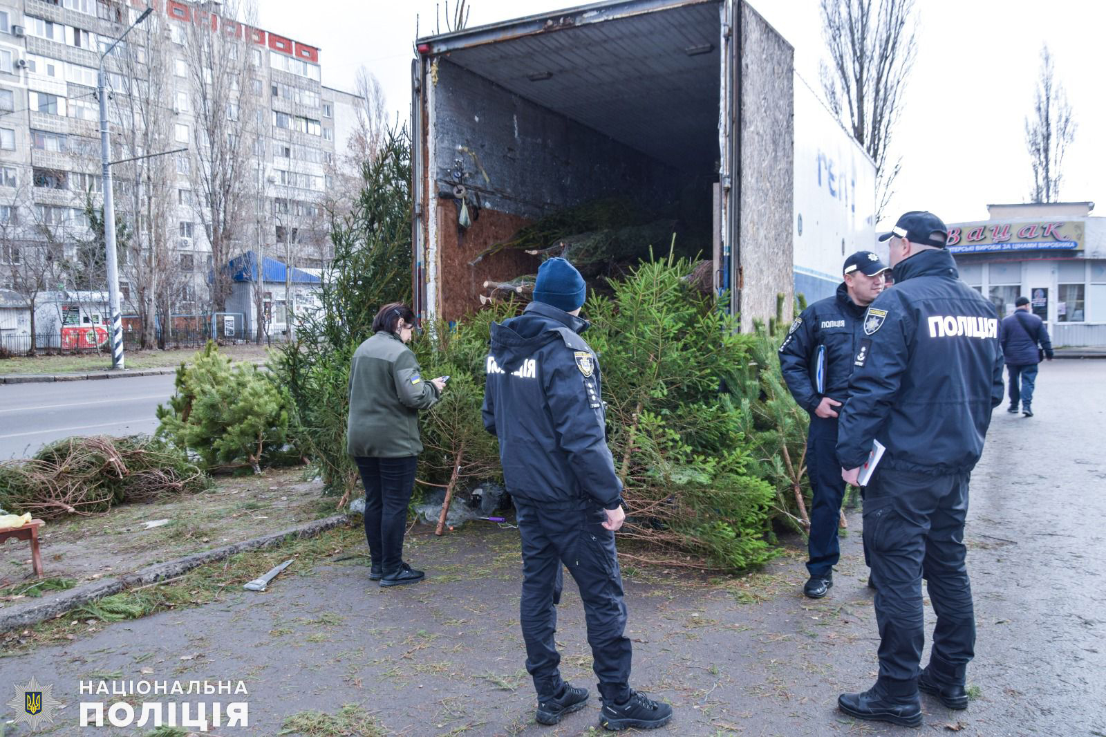 На сьогодні спільні групи правоохоронців здійснили 108 рейдів на ринках, торгівельних майданчиках, у місцях стихійної торгівлі, а також перевірили 38 транспортних засобів, які перевозили хвойні дерева.