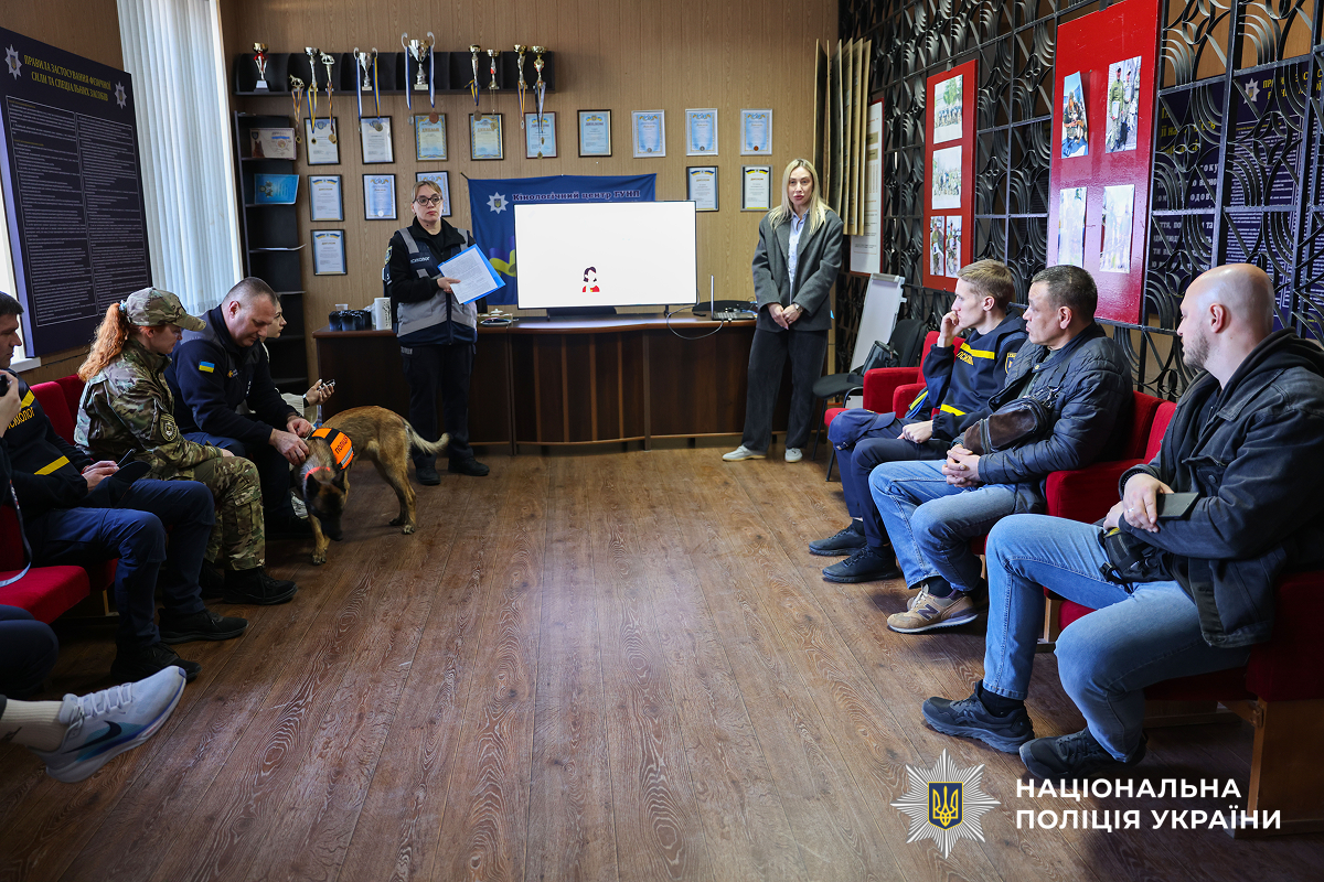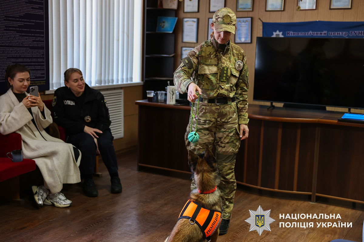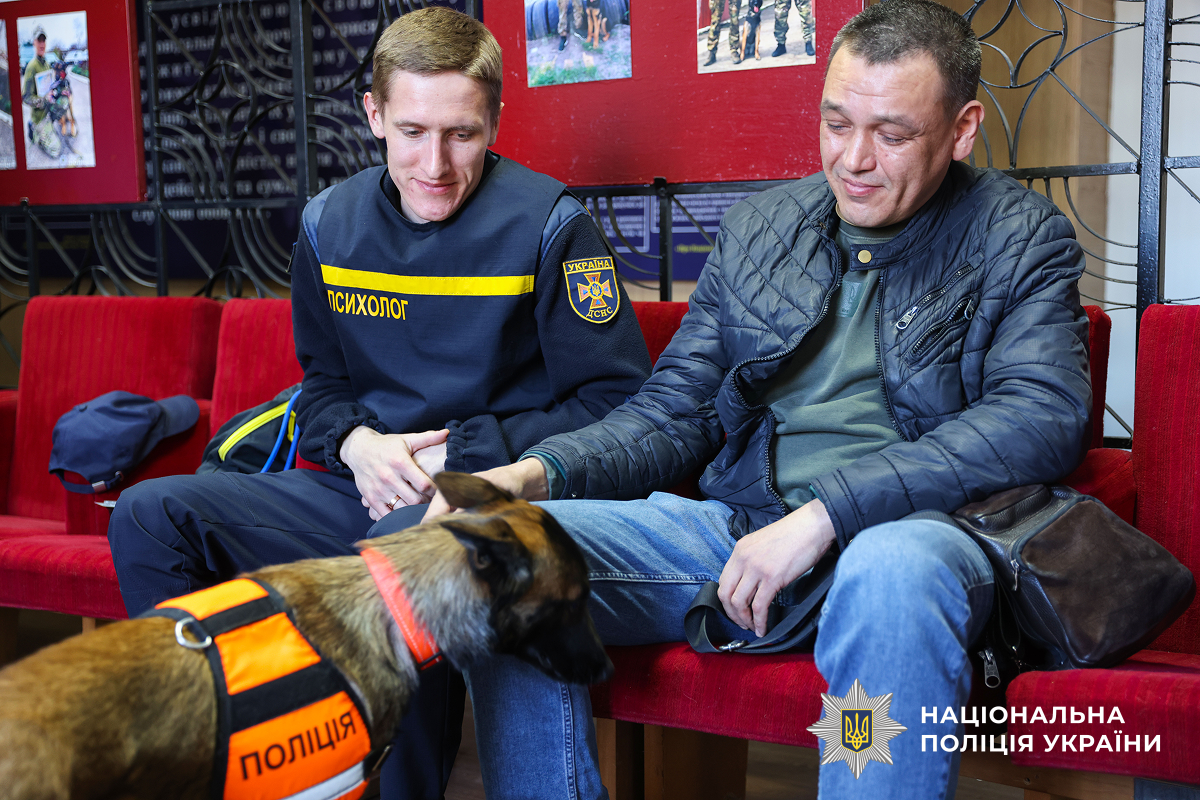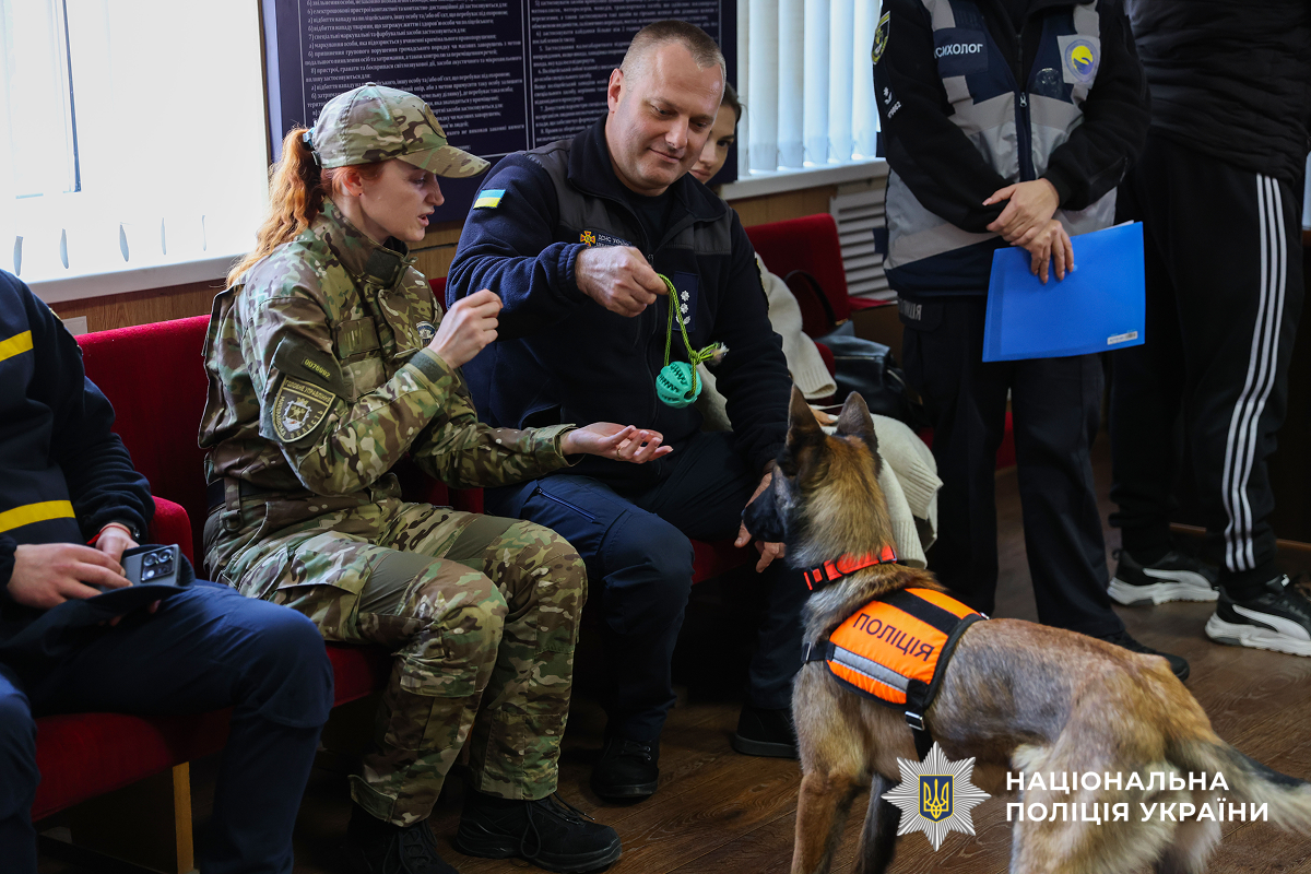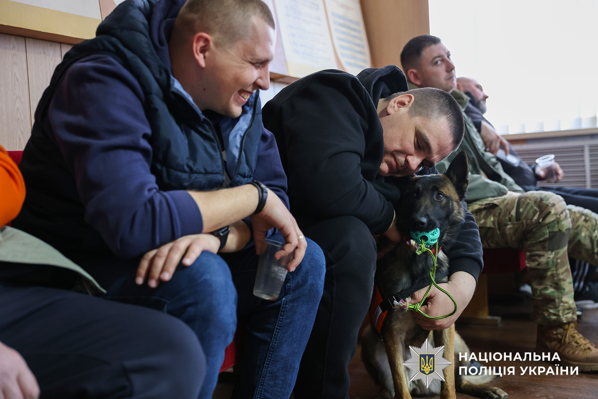 Фахівці відділу психологічного забезпечення та інспектори кінологічного центру поліції зі спеціально навченою службовою бельгійською вівчаркою Ією психоемоційно розвантажили правоохоронців, які безпосередньо беруть участь у захисті країни.