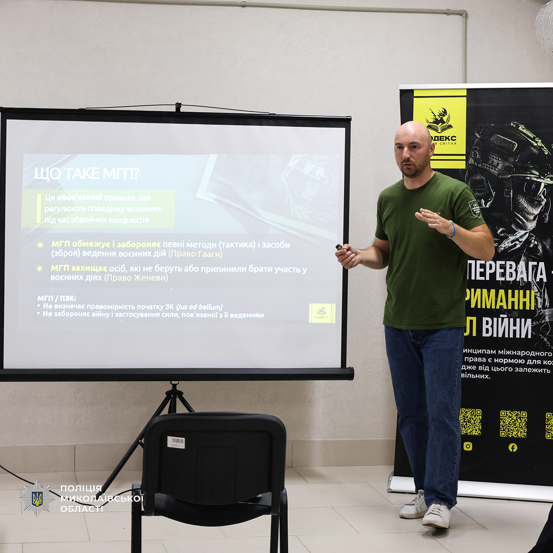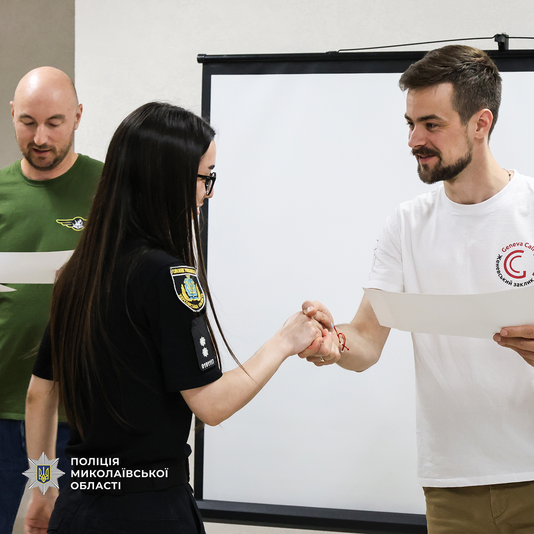З метою посилення обізнаності правоохоронців щодо стандартів міжнародного гуманітарного права та його застосування під час виконання службових обов’язків в умовах збройного конфлікту для поліцейських Миколаївської та Херсонської областей організували дводенний тренінг експерти Міжнародної гуманітарної організації «Женевський Заклик».