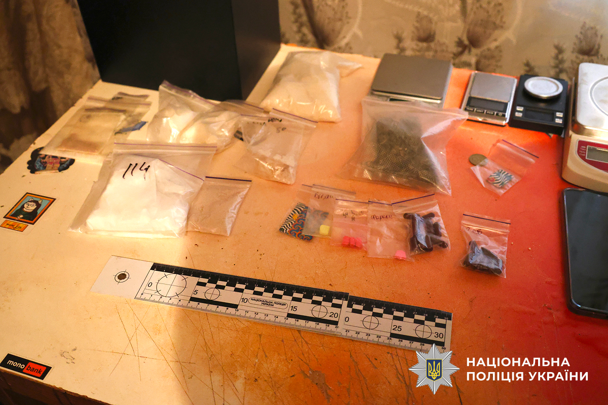 За силової підтримки бійців спецпідрозділу КОРД і роти поліції особливого призначення, правоохоронці провели санкціоновані обшуки за місцями мешкання зловмисників. У ході слідчих дій поліцейські вилучили майже 400 грамів амфетаміну, понад 140 грамів Alfa-PVP, 126 грамів порошкоподібної речовини білого кольору, понад 70 грам канабісу, 18 згортків із психотропами та синтетичним психоактивним наркотиком, 17 пігулок психотропної речовини, Macbook, вакууматор, устаткування для фасування та пакування, порожні зіп-пакети, чорнові записи, банківські картки, електронні ваги., мобільні телефони, десятки мотків клейкої стрічки.
