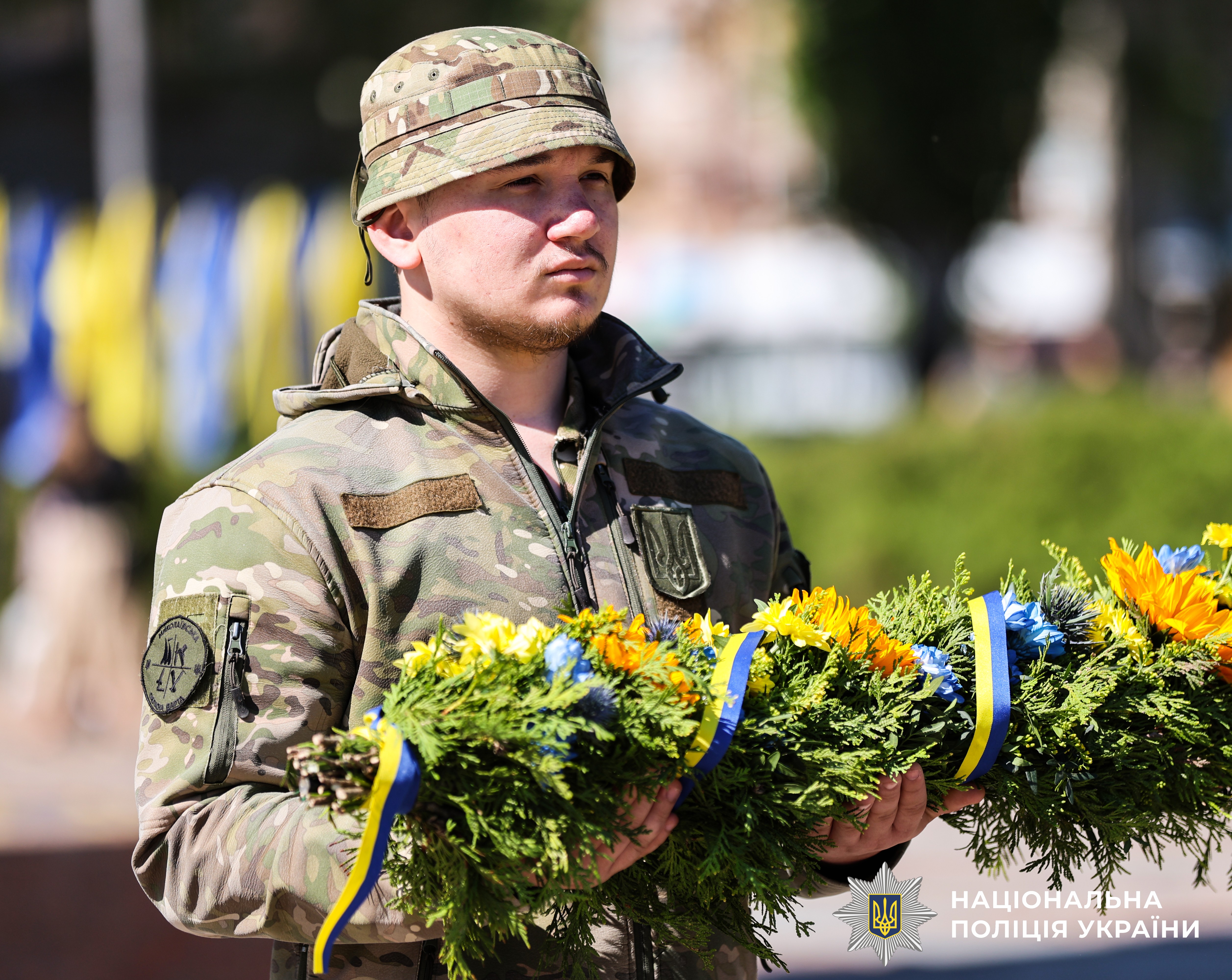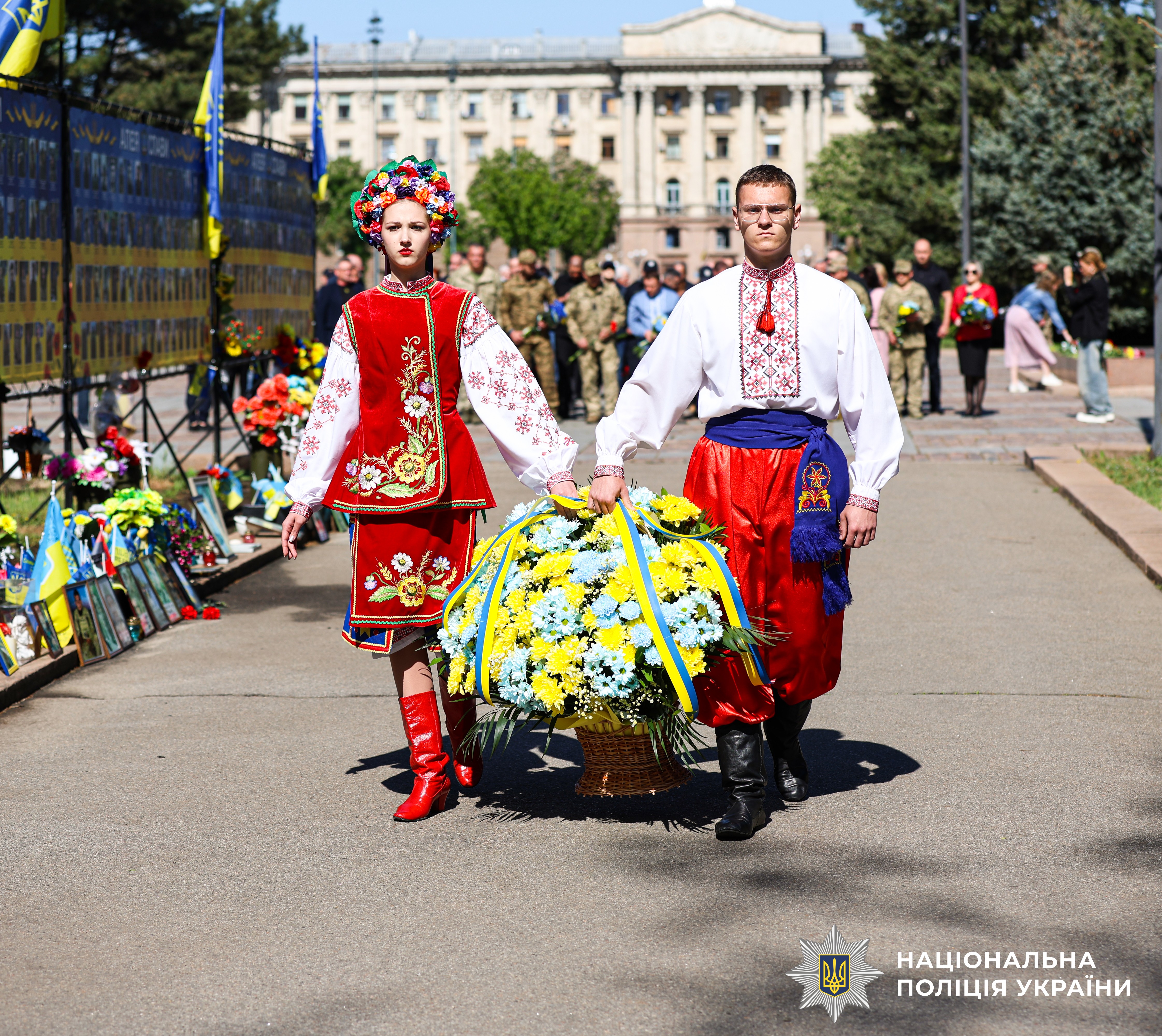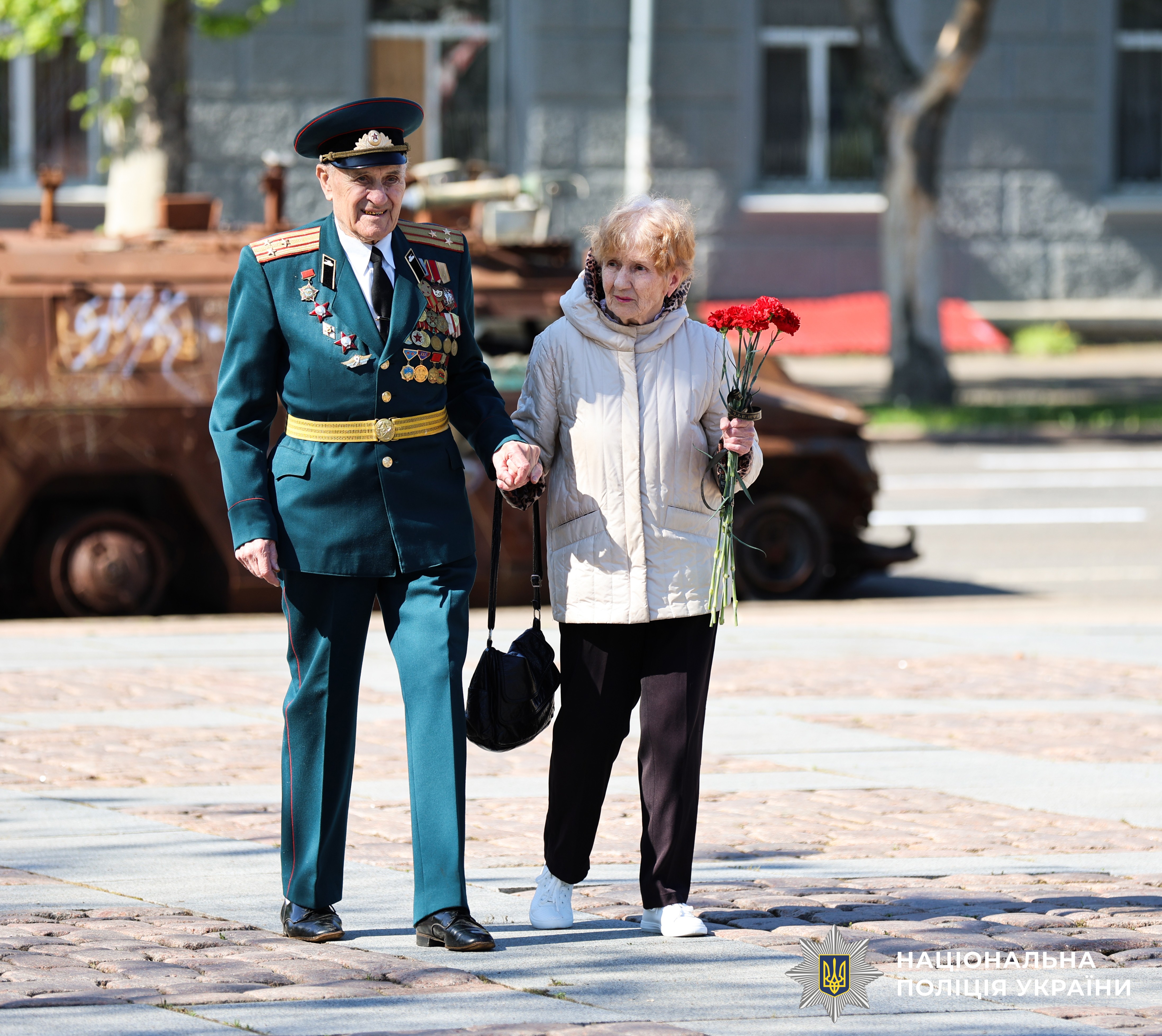 Учасники заходу поклали квіти до меморіального комплексу на честь героїв-десантників загону Костянтина Ольшанського, Вічного вогню, а також до тимчасового меморіального місця, присвяченого загиблим захисникам України. Хвилиною мовчання присутні вшанували пам’ять мільйонів, які віддали свої життя на полях боїв Другої світової війни та сучасної боротьби за незалежність.
