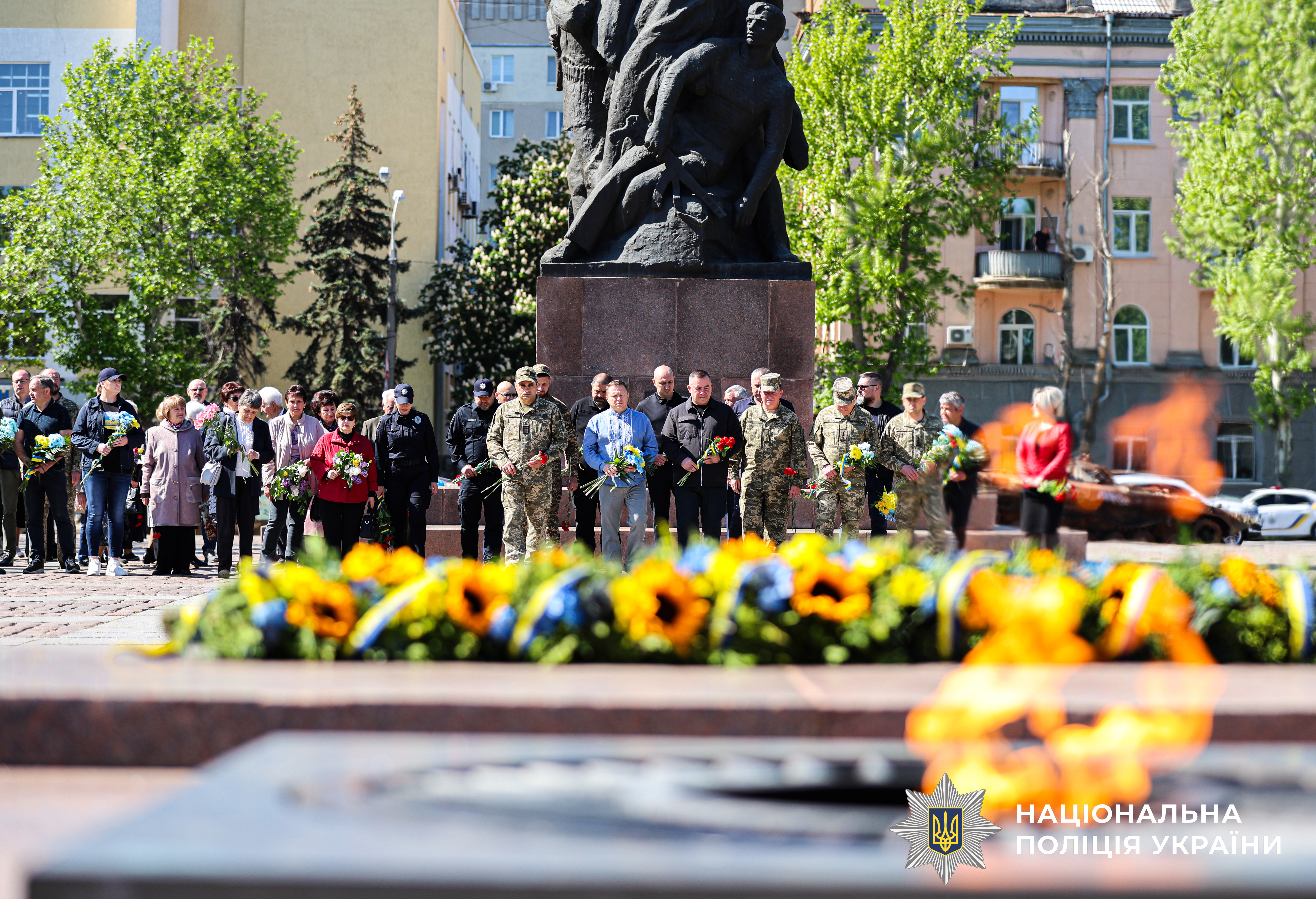 Представники обласної та міської влади, військові, обласного главку поліції, рятувальники, депутати, ветерани, громадськість та мешканці міста зібралися, аби вшанувати пам’ять тих, хто ціною власного життя наближав Перемогу, хто став на захист людяності, свободи та миру.