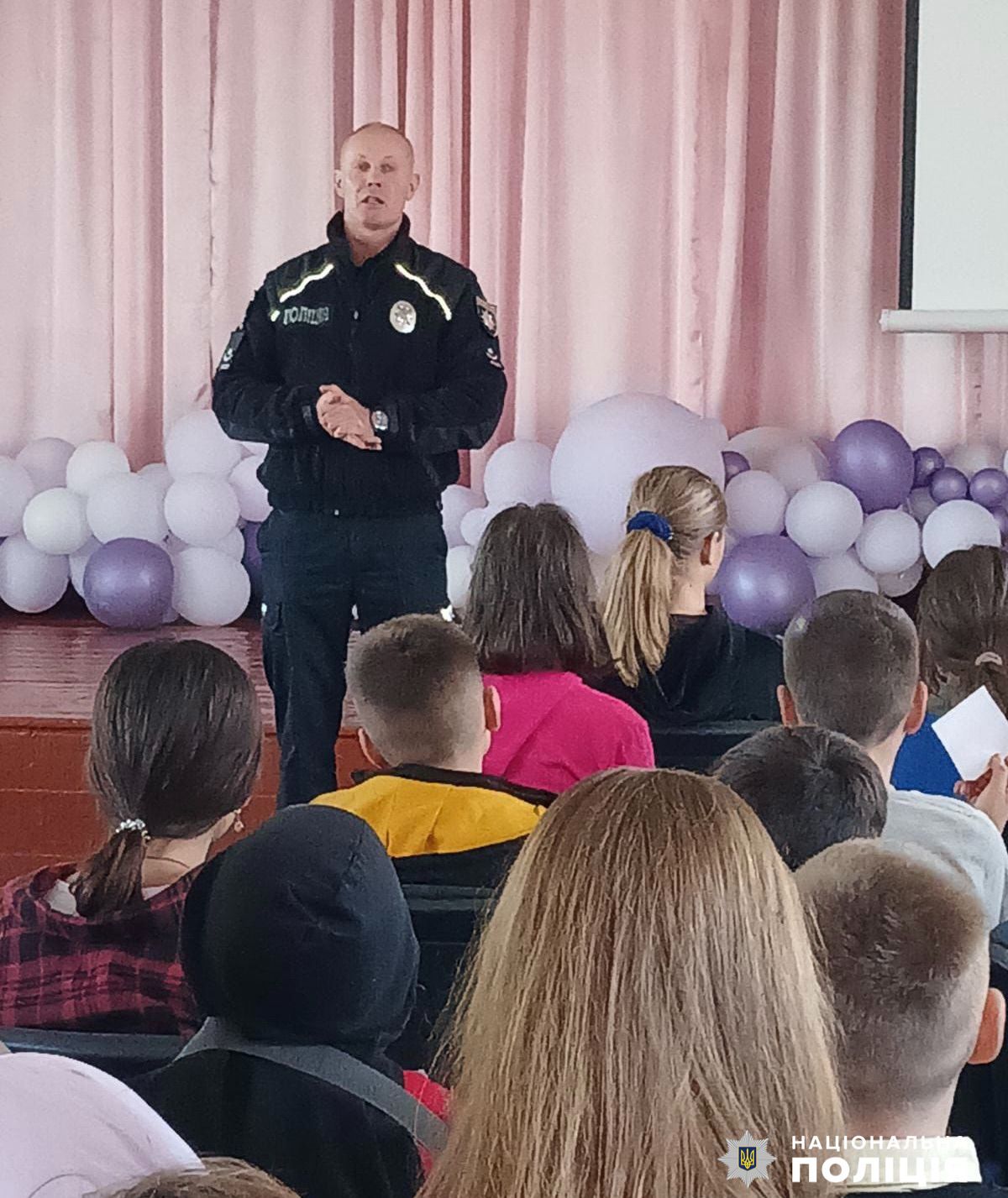 Також інспектор-ювенал наголосив школярам як в умовах сьогодення необхідно діяти під час оголошення повітряної тривоги та виявлення вибухонебезпечних предметів, про дотримання правил безпечного дозвілля, про заборону перебування на вулиці у вечірній час без супроводу дорослих.