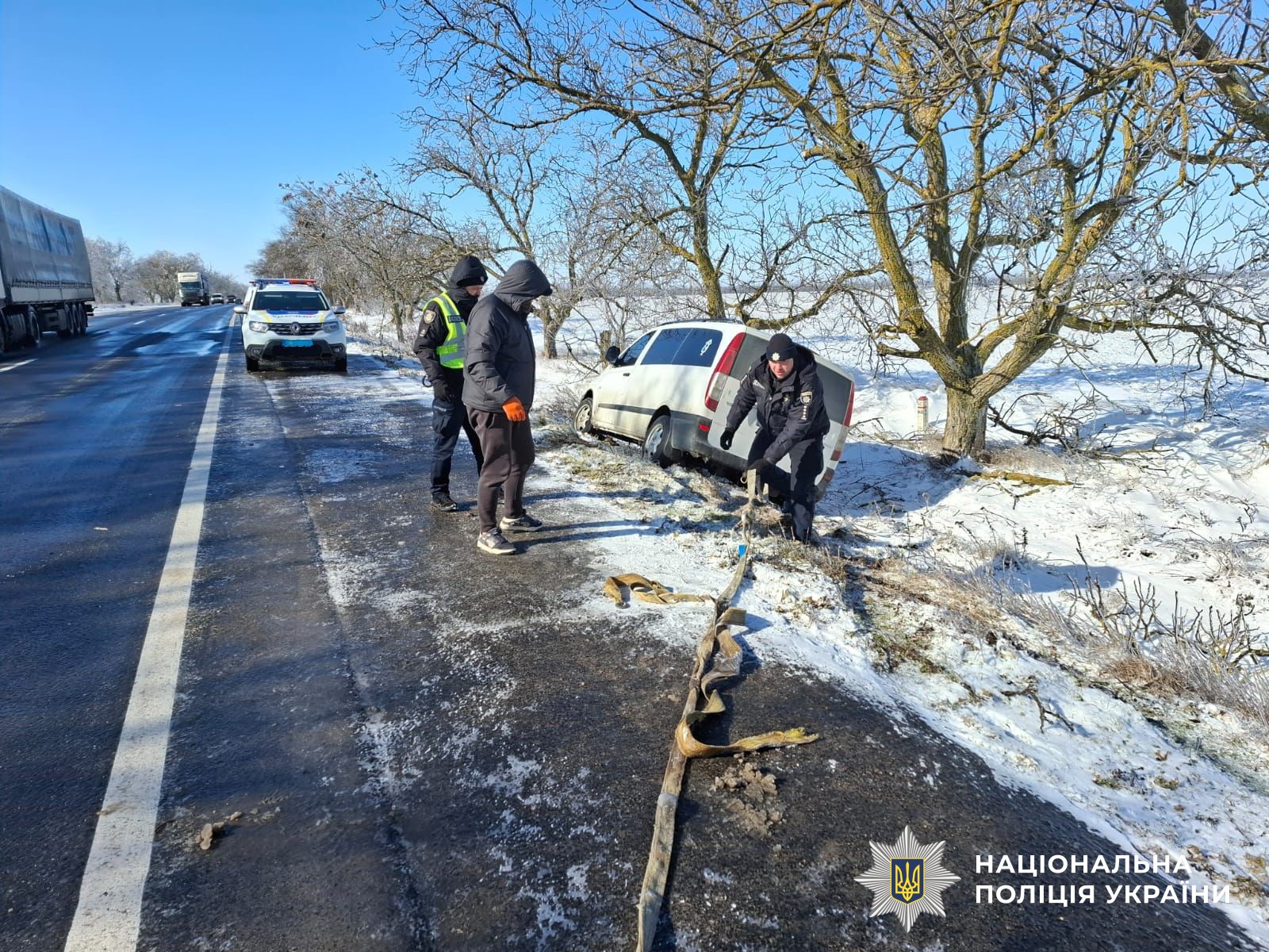 У Миколаївському районі поліцейські офіцери громад продовжують допомагати водіям під час негоди