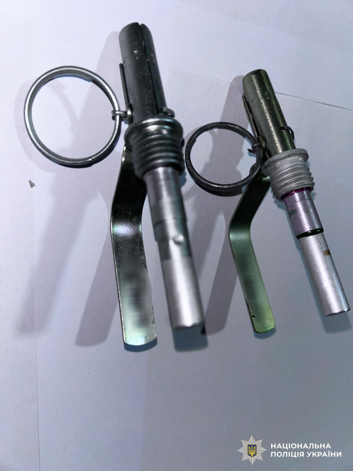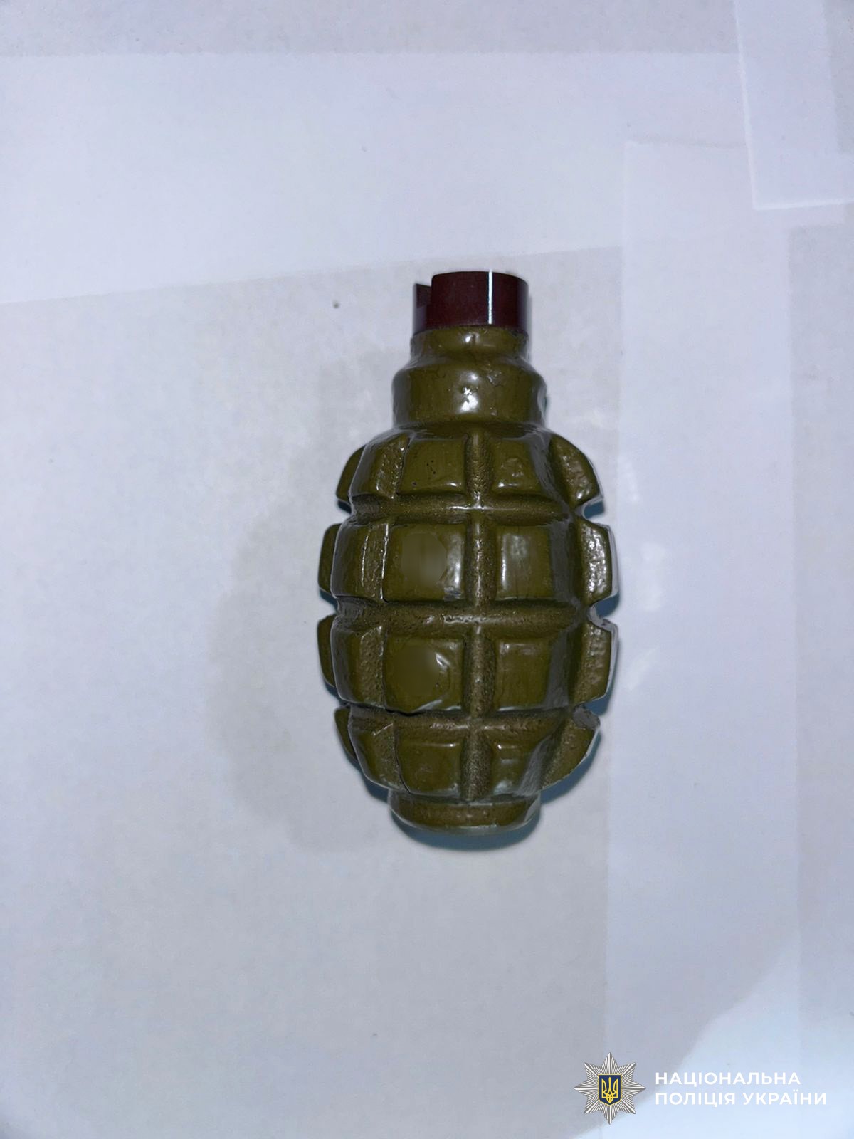 На місці події правоохоронці вилучили дві гранати Ф-1, підривачі та 100 набоїв.