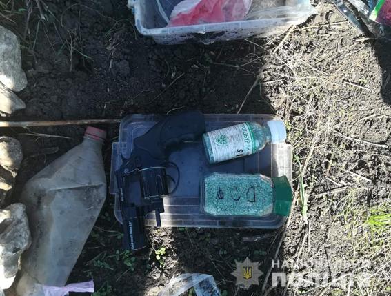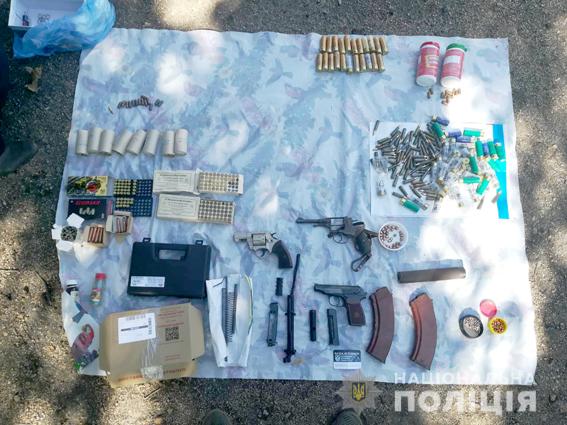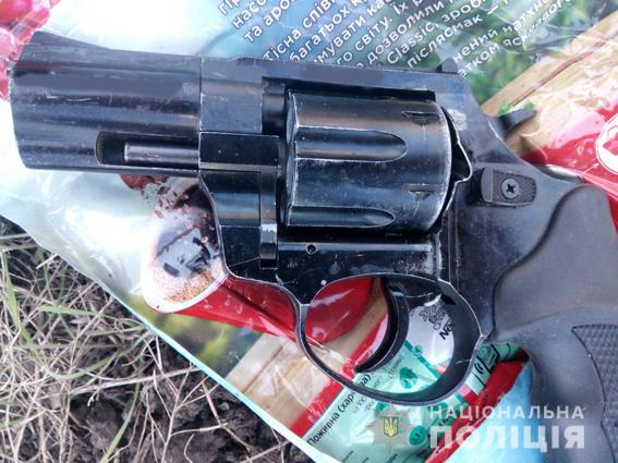 А під час обшуку на території домоволодіння 46-річного жителя с. Артемівка співробітники поліції виявили два револьвери та стартовий пістолет Сталкер, який зловмисник переробив для відстрілу набоїв травматичної дії, саморобну вибухівку невідомого походження та більше сотні набоїв калібру 7,62 та 9 мм, мисливські, шумові та інші. А у схроні на околиці села, закопав ще один револьвер та дві банки пороху. Господар зізнається, що один пістолет купив у невідомого чоловіка, а усе інше озброєння знайшов у лісосмузі.