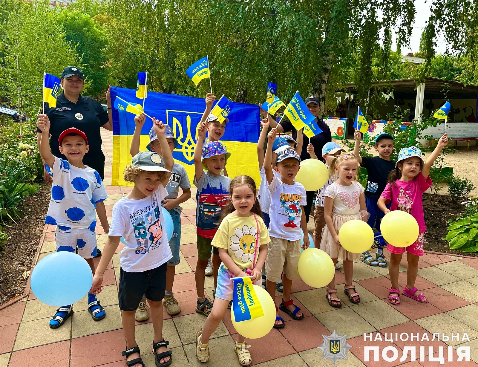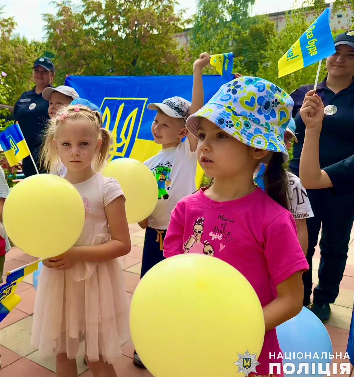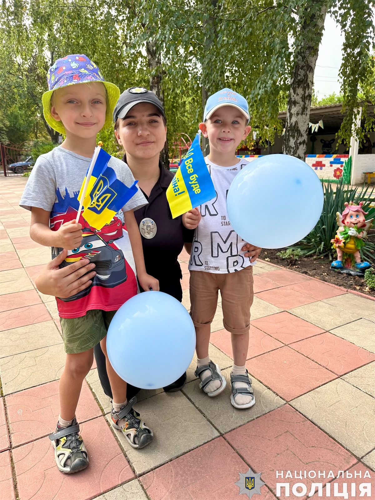 Наприкінці заходу правоохоронці подарували дітлахам синьо-жовті прапорці – українські обереги, та повітряні кульки у тон до них.