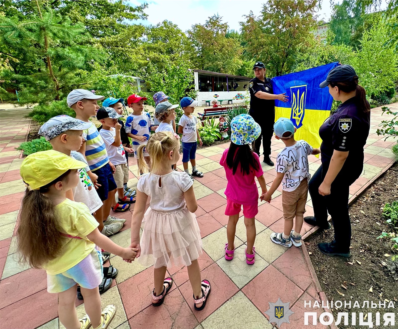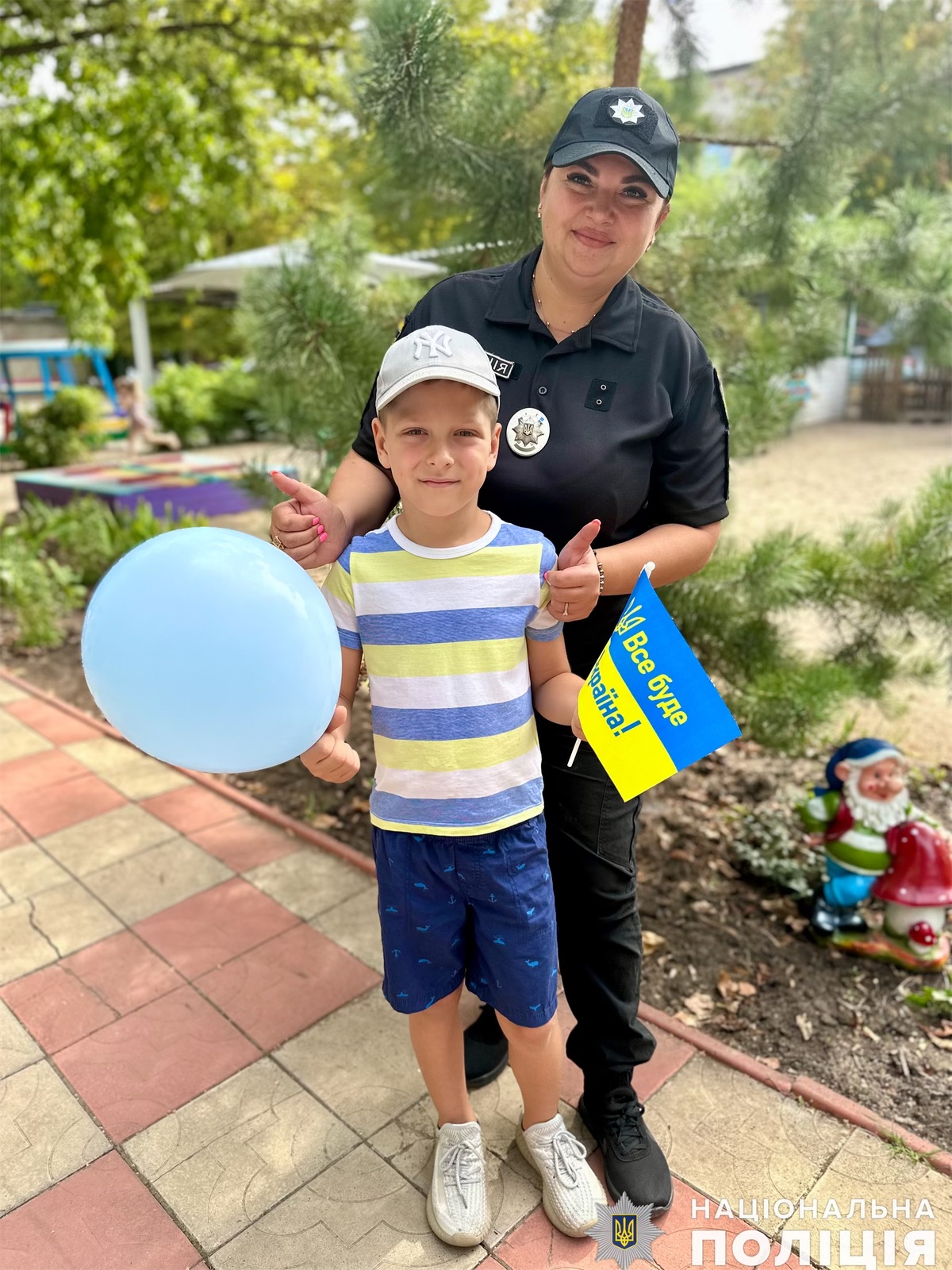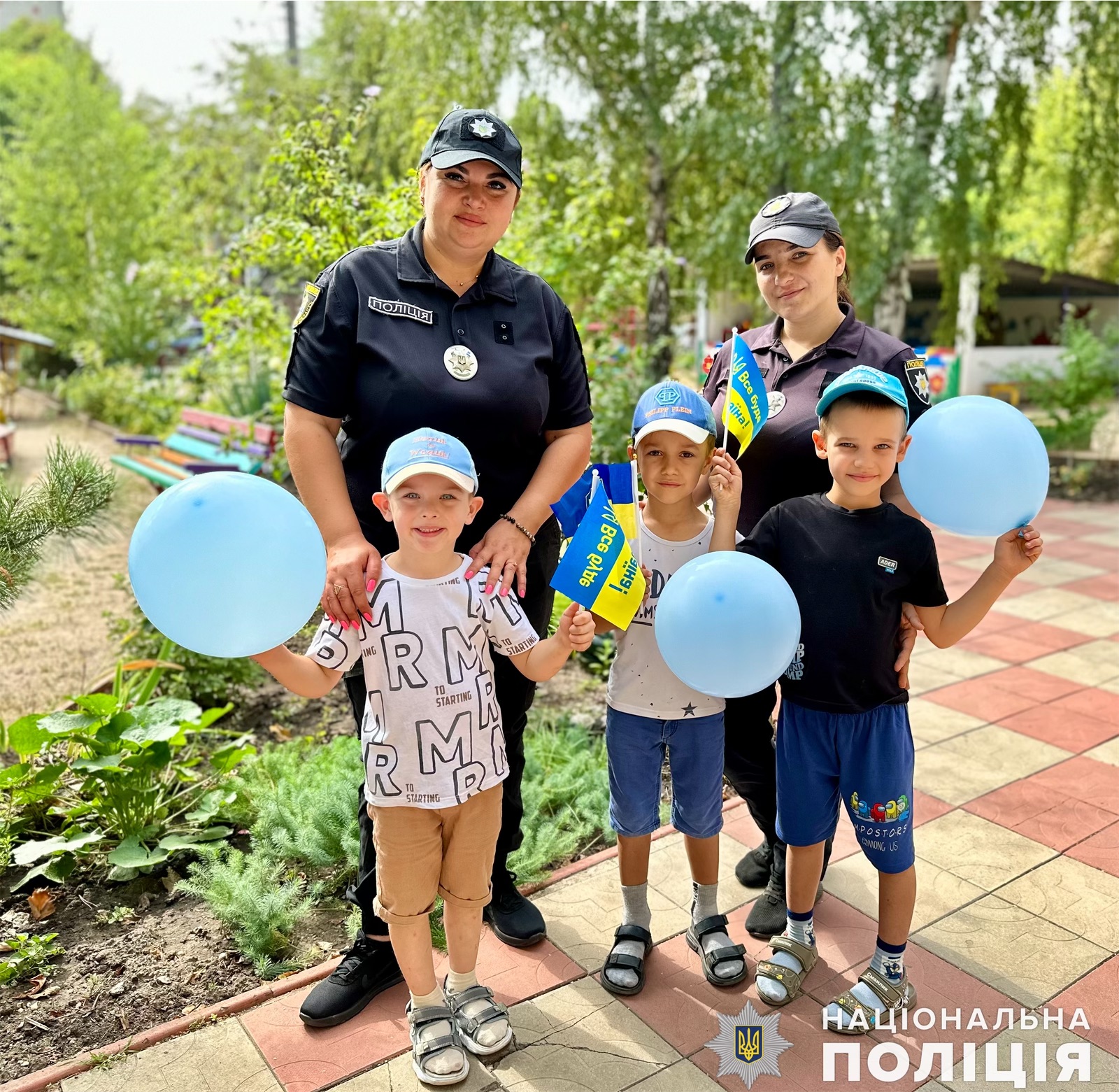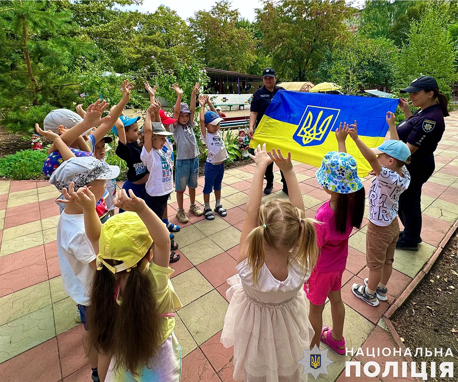 Наприкінці заходу правоохоронці подарували дітлахам синьо-жовті прапорці – українські обереги, та повітряні кульки у тон до них.
