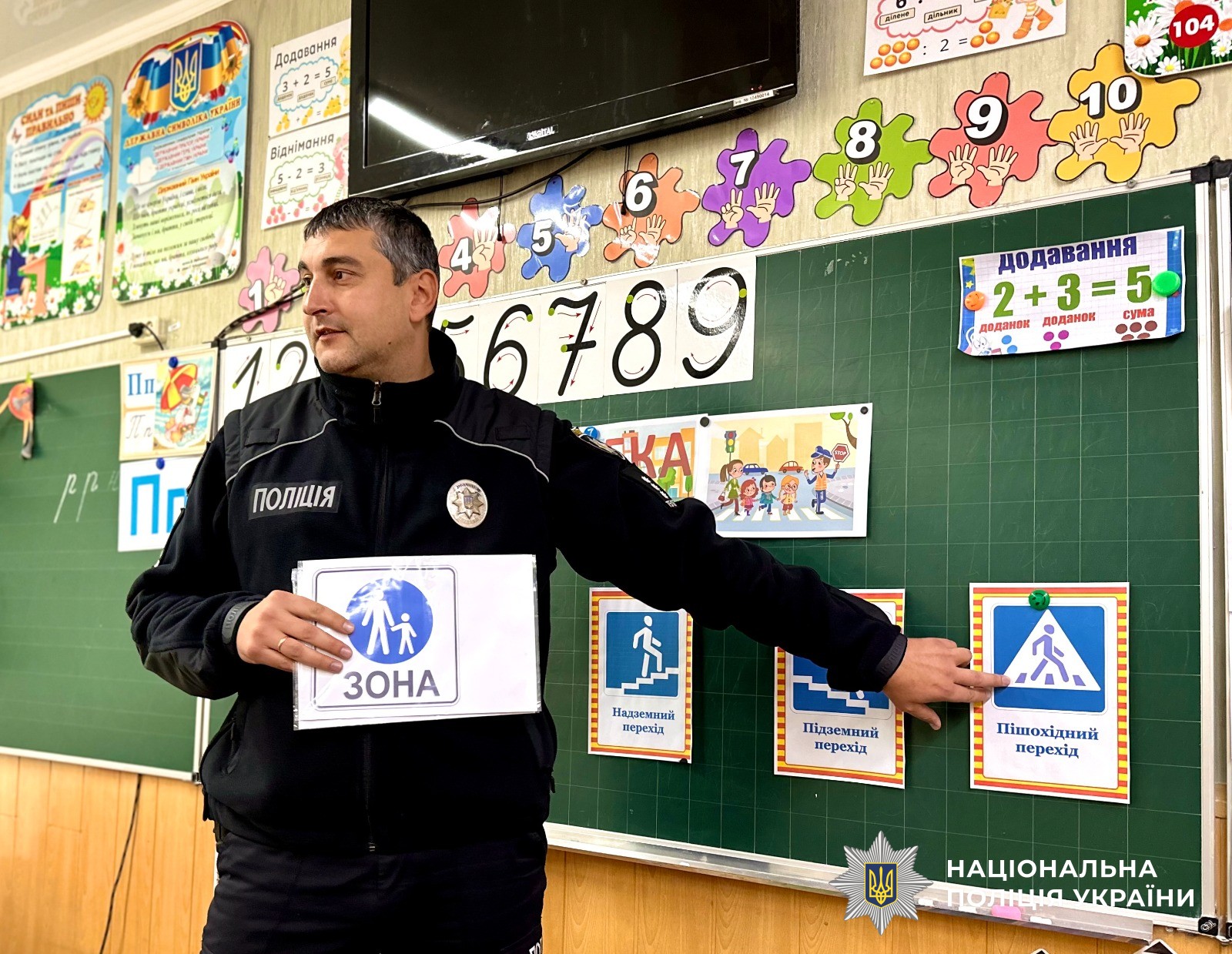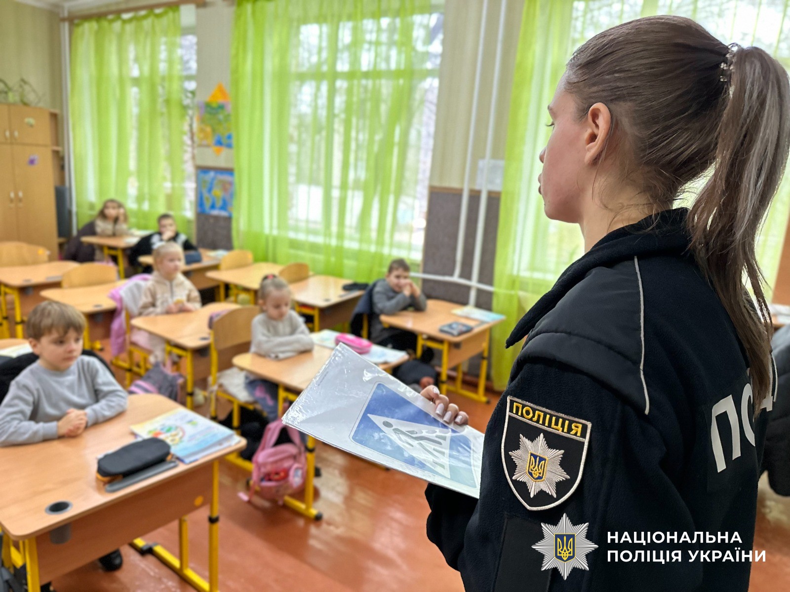 Правоохоронці розповіли дітям, що у будь-яку пору року необхідно бути вкрай уважним та обережним на проїжджій частині, тротуарах та пішохідних переходах, користуватись засобами особистої безпеки, одягатись відповідно до сезону та погодних умов. Нагадали про різновиди та значення основних дорожніх знаків, як правильно та безпечно переходити дорогу, з якого віку і де можна їздити на велосипедах. Зазначили, що у темну пору доби важливо використовувати світловідбивні елементи на одязі та речах, адже саме вони допомагають водіям швидше помічати пішоходів на дорозі та вчасно зменшувати швидкість транспортного засобу.