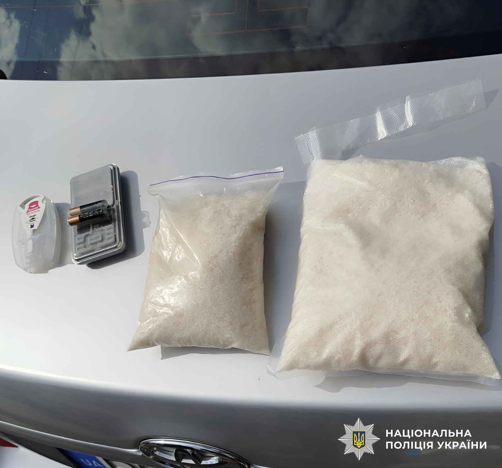 Правоохоронці затримали фігуранта у таксі під час перевезення наркотичної речовини. У ході обшуку транспортного засобу поліцейські виявили та вилучили коробку з кормом для домашніх улюбленців, у якій були замасковані два zip-пакети із кристалічною речовиною білого кольору, вагою понад три кілограми. Загальна вартість вилученого за цінами «чорного» ринку становить понад 1,5 мільйона гривень.