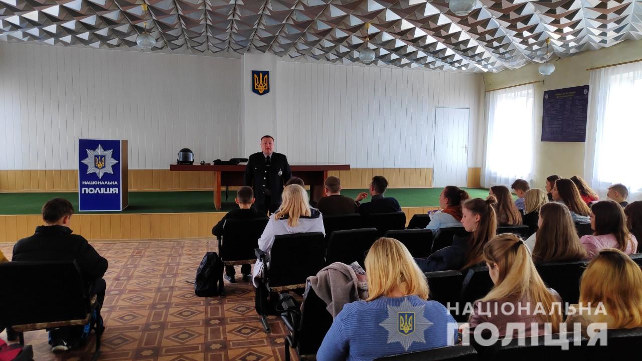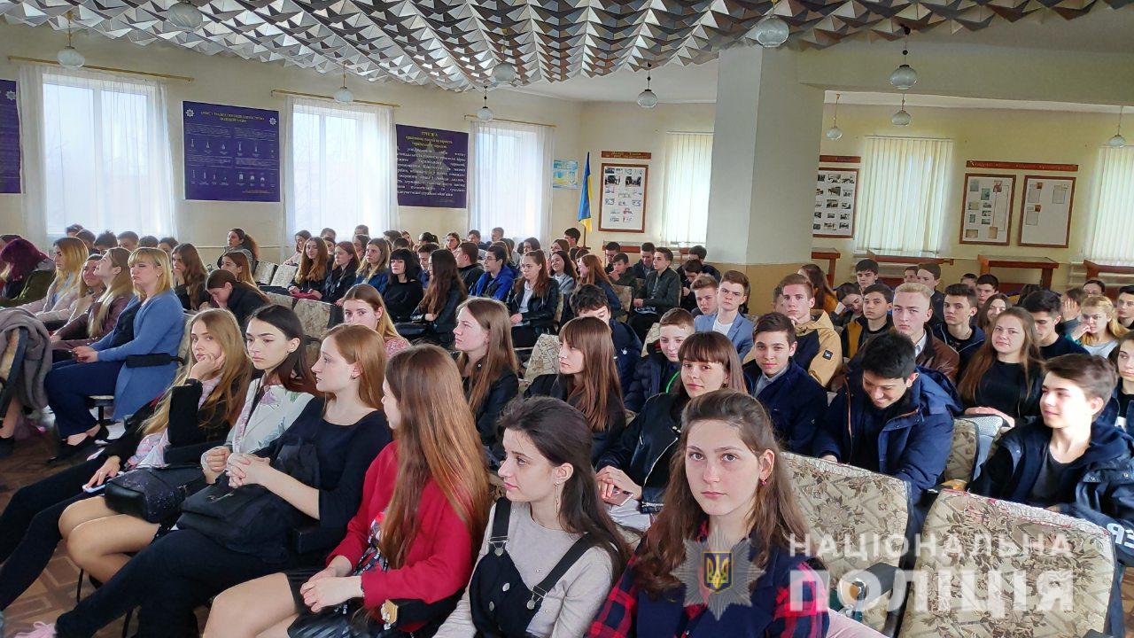 У актовій залі на підлітків чекала лекція про те, як не стати жертвою злочину, та виставка спеціальних засобів, що знаходяться на озброєнні у правоохоронних органів. Після розповіді про збройне оснащення та нагадування основ безпеки, кожен школяр мав можливість приміряти бронежилети і каски, та потримати в руках спецзасоби.