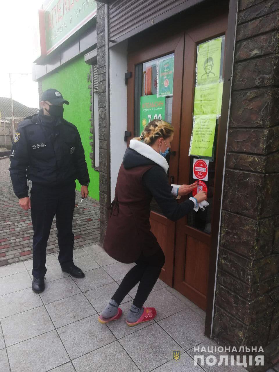 Також поліцейські вказали підприємцям на безумовне дотримання карантинних норм та протиепідемічних заходів в приміщеннях торгівельних закладів. Та повідомили, що 21 листопада вступили у силу зміни до КУпАП, що стосуються відповідальності за перебування без маски у громадських будівлях і транспорті, що тягне за собою накладення штрафу від 10 до 15 неоподатковуваних мінімумів доходів громадян.