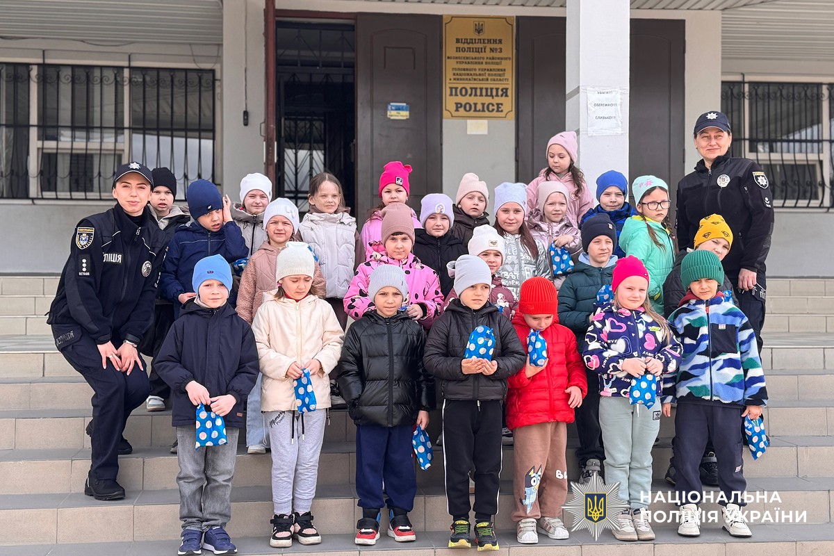 Екскурсію до відділення поліції № 3 Вознесенського райуправління організували та провели інспектори сектору ювенальної превенції та із дотримання прав людини. Особливу увагу дітлахів привернули продемонстровані ювенальними поліцейськими елементи службового екіпірування та спеціальні засоби. Під час зустрічі правоохоронці також нагадали малечі основи безпечної поведінки на вулиці, пояснили правила дорожнього руху та важливість світловідбиваючих елементів у темну пору доби.
