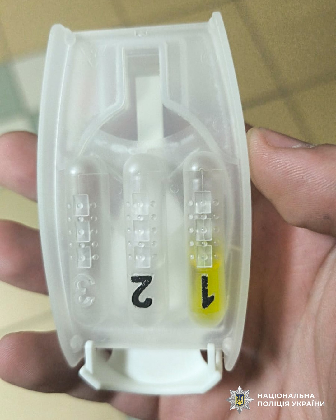 Слідчі затримали зловмисницю у порядку ст. 208 Кримінального процесуального кодексу України та повідомили їй про підозру у незаконному придбанні, зберіганні психотропних речовин з метою збуту в особливо великих розмірах ( ч. 3 ст. 307 Кримінального кодексу України). За скоєне їй загрожує до 12 років позбавлення волі з конфіскацією майна.