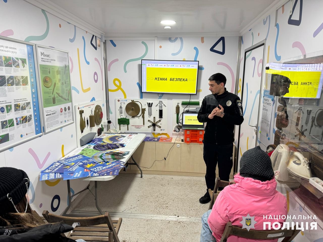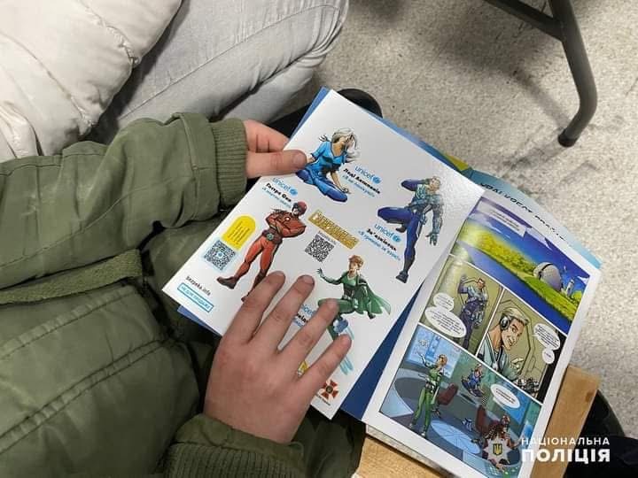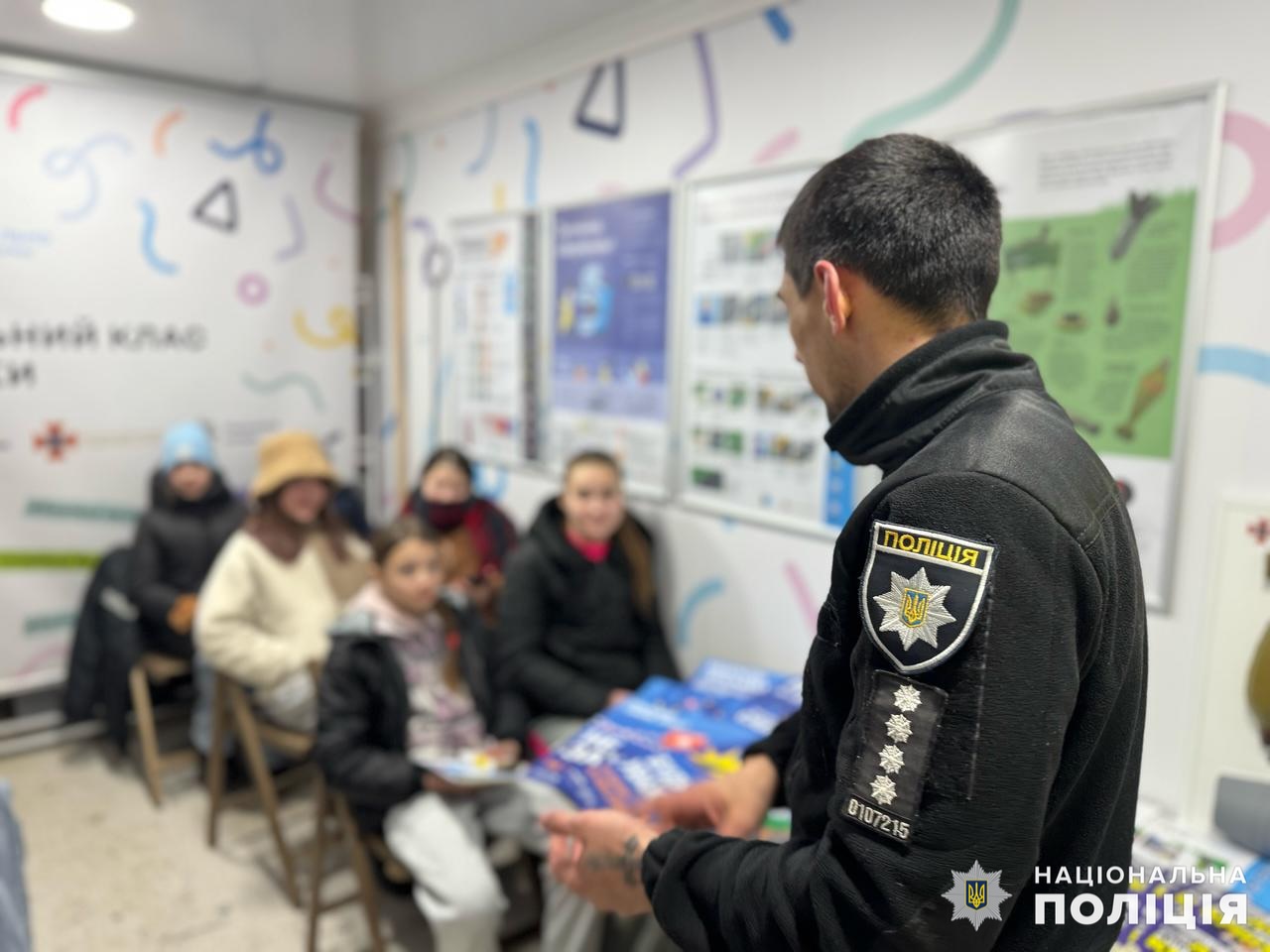 Поліцейський наголосив дітям на необхідності дотримання вимог Правил дорожнього руху, згадавши разом значення дорожніх знаків. Особливу увагу дітей правоохоронець звернув на безпеці під час перетину проїзної частини, необхідності завжди дивитись по сторонах, впевнившись, що немає транспортного засобу або водій зупинився, та на забороні користування гаджетами на вулиці. Інспектор наголосив, що у темну пору доби обов’язково потрібно одягати яскравий одяг чи позначати себе світловідбивними елементами - це можуть бути наліпки, флікери чи браслети.