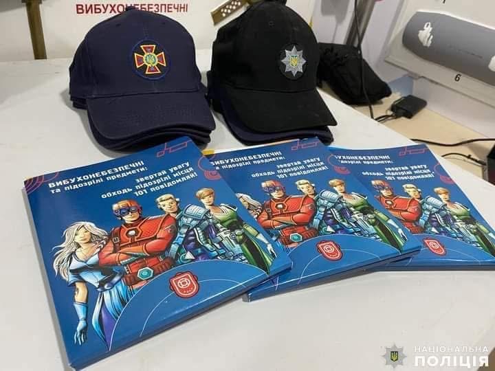 Надзвичайники розповіли про мінну безпеку та продемонстрували макети різних вибухових предметів і пристроїв, де вони можуть знаходитись та яку загрозу несуть для життя та здоров’я. А також ознайомили дітей як діяти у разі виявлення займання, підозрілих чи вибухонебезпечних предметів.