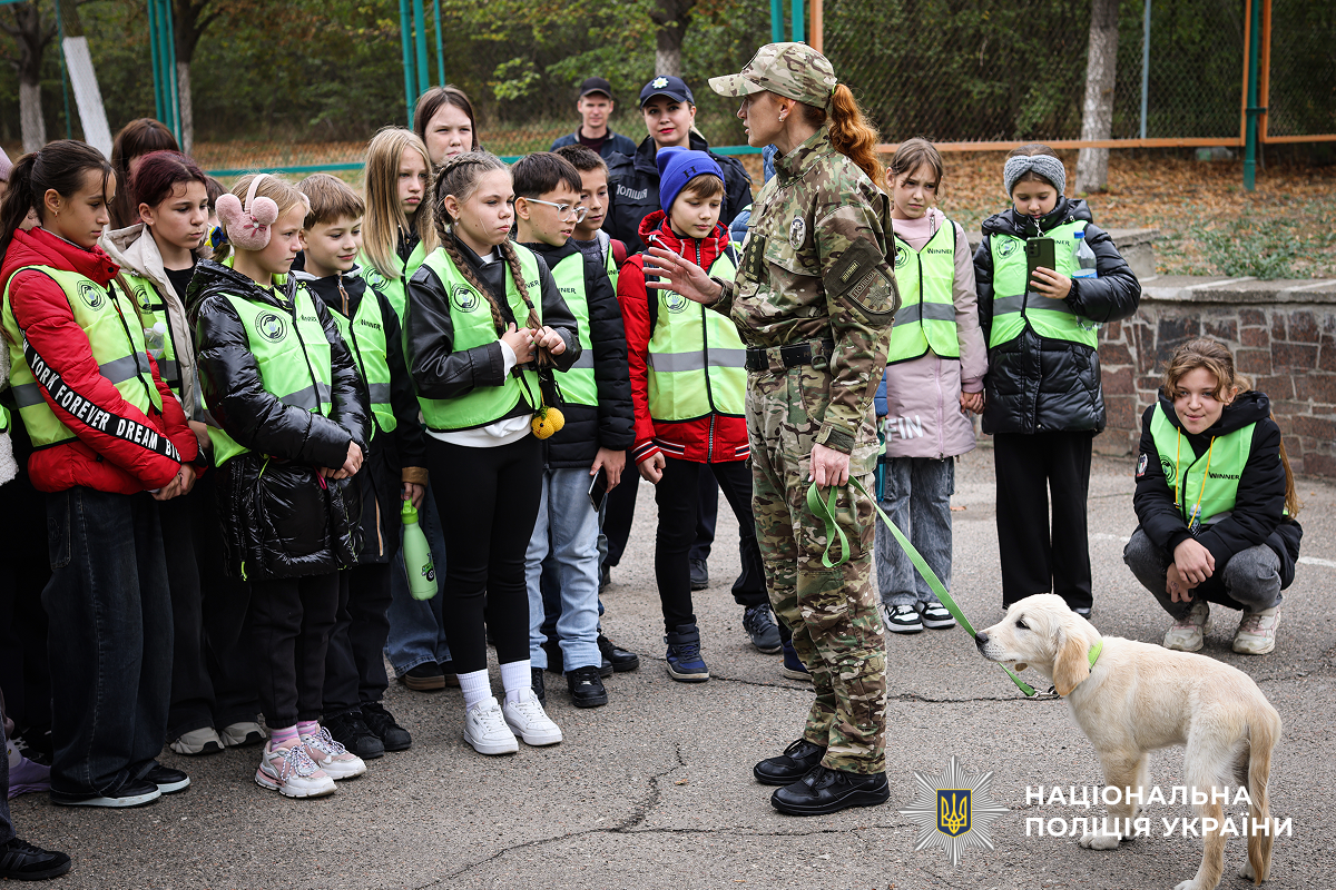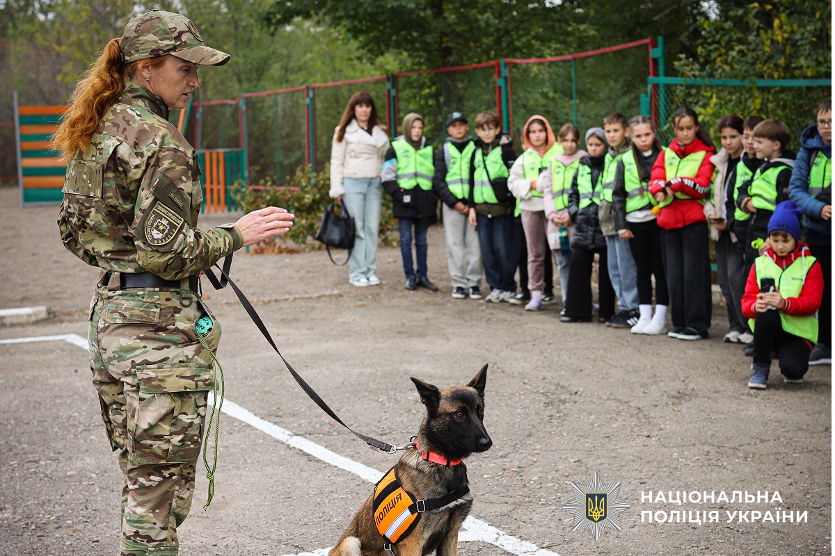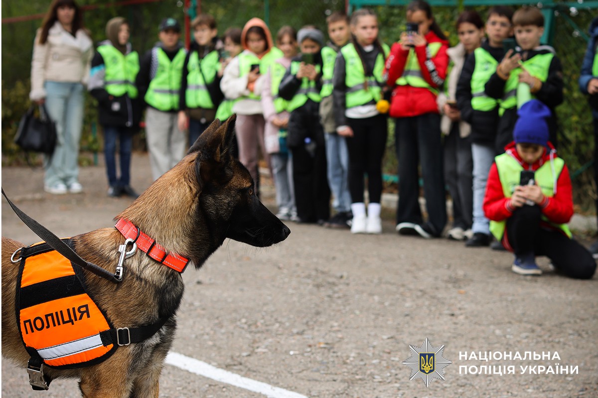 Після ознайомчої лекції, правоохоронці запросили дітей на власні очі побачили де живуть та тренуються їхні чотирилапі службові помічники. Найбільший захват у дітей викликав показова програма дресування поліцейських собак. Вправні дії, чітко виконані команди кінолога, успішно знайдена вибухівка та «затриманий» злочинець - чотирилапі демонстрували гостям свої вміння, а потім залюбки бавились із власною іграшкою.